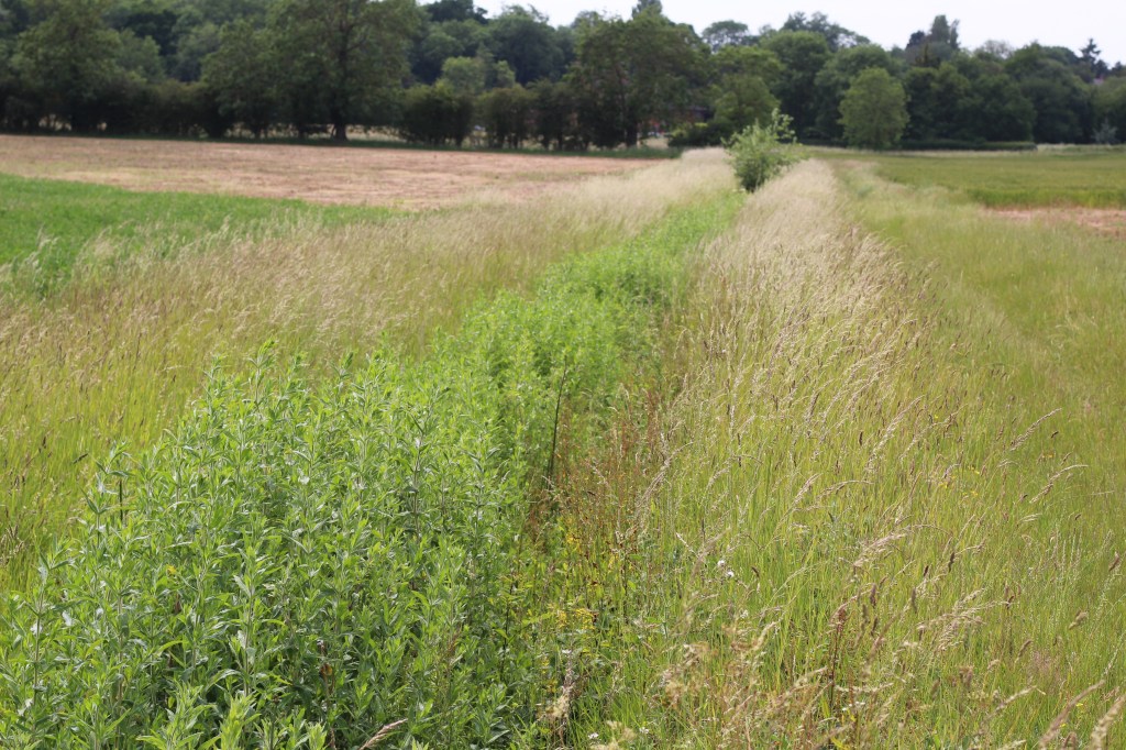 Carrying on, I drop down from Fox’s Bargain towards Langley Green Farm. Some of the fields are fallow this year, and wildflowers prosper. In fact, given the masses of clover, has it been planted deliberately as a green manure?