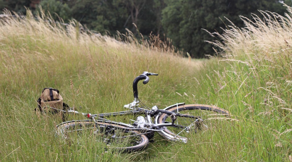 How much of it was necessary, I don’t know. But it got done: the cabinet for storing files was hung in the office; the wooden worktops in the kitchen were varnished; clothes were washed, dishes too; tasks in the garden – shrubs pruned and perennials flush with the seemingly daily rain cut back, bird feeders refilled, and the pheromone trap for box moths emptied (a new arrival last year; will I have to ultimately give up on plants grown from tip cuttings a dozen years ago? So much investment, but nothing lasts, nothing is finished, nothing is perfect); tasks in my mum’s garden too – the branch of a laburnum torn from the trunk by strong winds, cut up and moved; and with the fridge empty, food bought. Incessant, non-stop, until enough is enough – then an hour or two astride, and beside (to stand and stare), two triangles of chromoly. Everything slowed down, everything forgotten – life lived through moments, to see this: