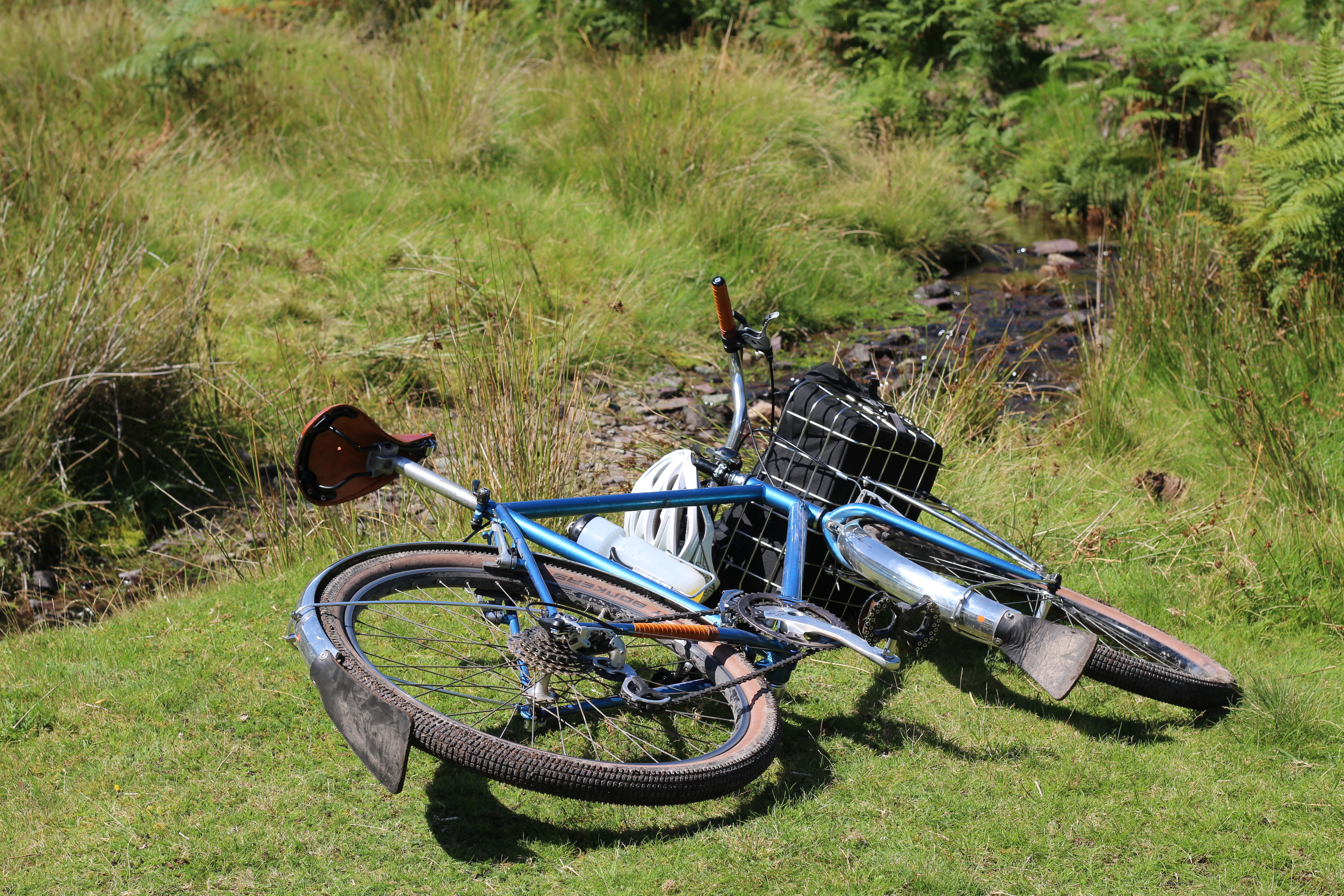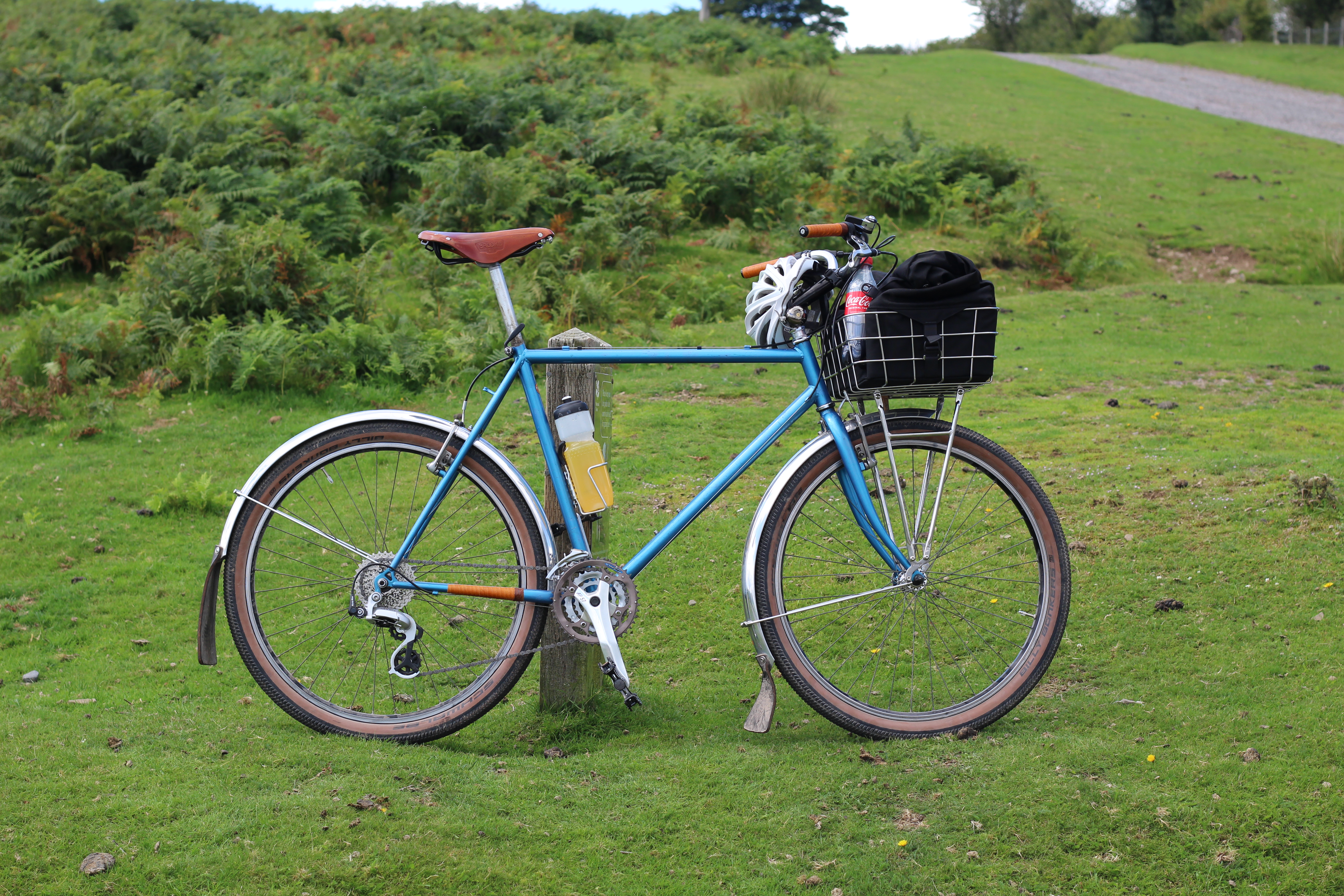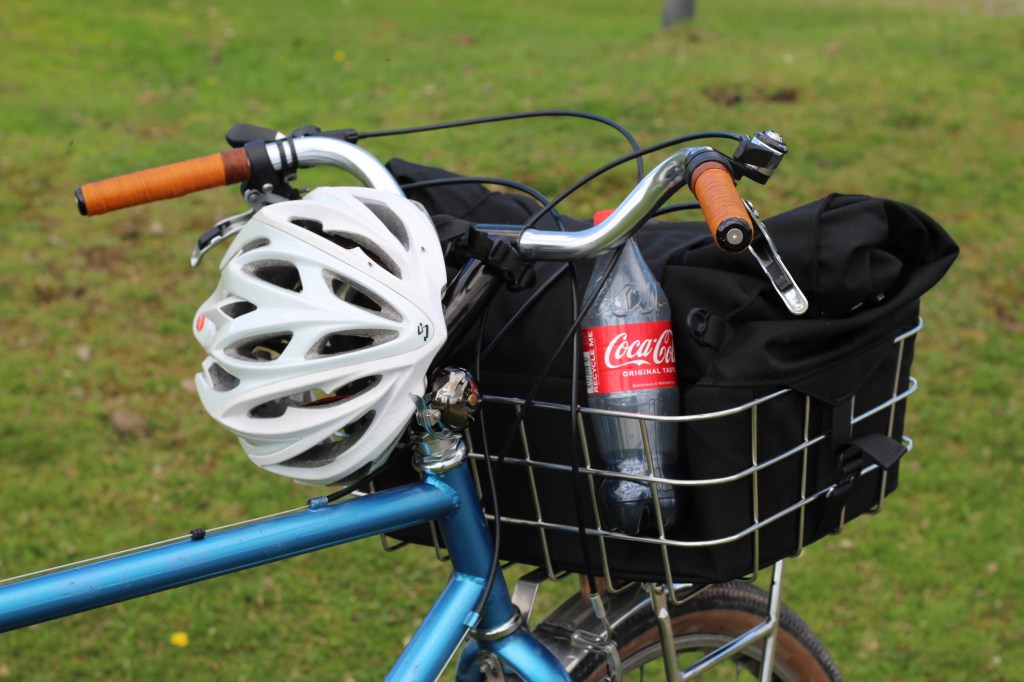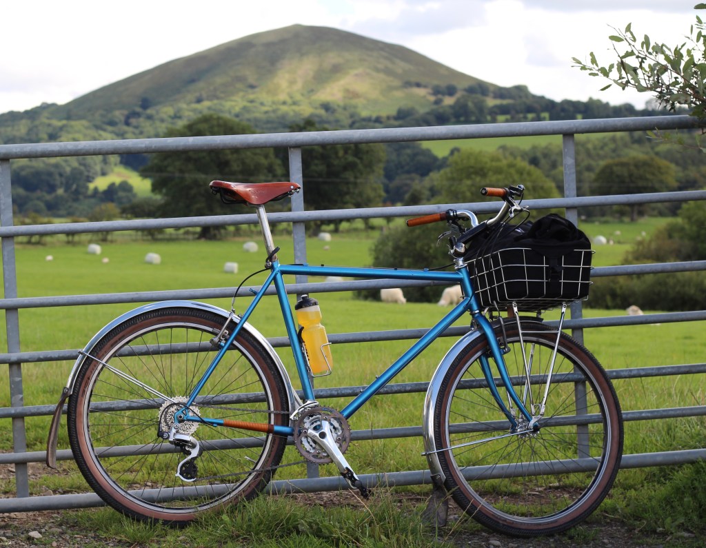 From Minton, it was quiet lanes, on through Little Stretton, and then Church Stretton, the largest village in these parts, and as a health resort in days gone by, it was referred to as Little Switzerland. The riding was very much in agreement with the cyclokairos ethos, one that is with ease, sights taken in, pedalling within the moment, nothing existing outside of the moment, as one moment dies and the next is born. “This is the bike to do The-World-tour-that-will-never-happen”, I think (of course I do, I’ve ridden for about 30 minutes not 300 days – who doesn’t feel good after half an hour of gentle pedalling?). Its features are how bikes should be: simple, practical, beautiful. Not motorbikes-in-all-but-name that mountain bikes are seemingly becoming. The comfort of skinny steel tubes and a leather saddle; the practicality of cable operated brakes and gears (which aren’t indexed but changed through friction), and mudguards (with flaps!); the look of shellacked cloth bar tape. Church Stretton reached, it was time for a pit stop at the Co-Op. An advantage of a basket soon became apparent: a readily accessible place to stuff, err, stuff, and opportunity for a shameless product promotion.