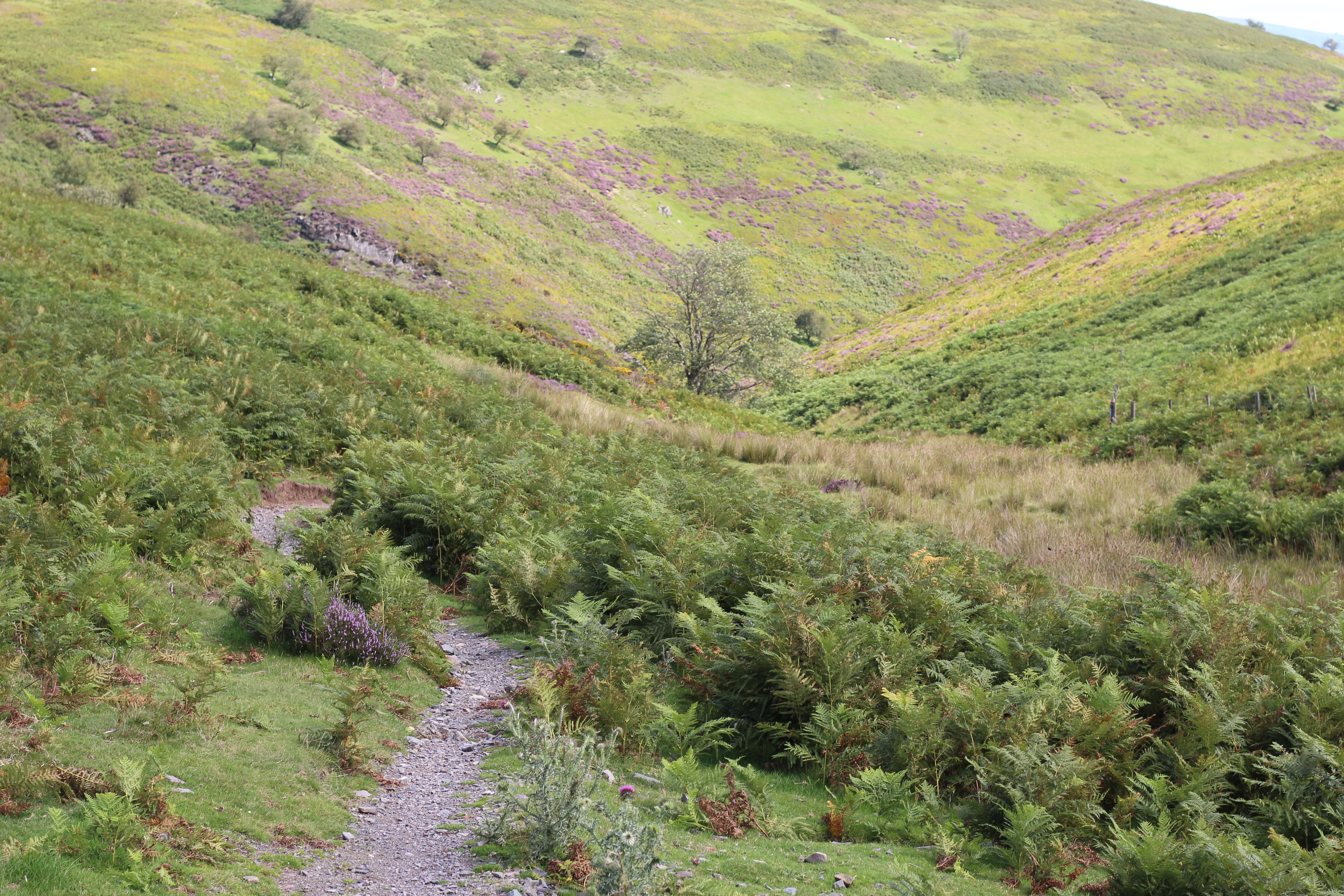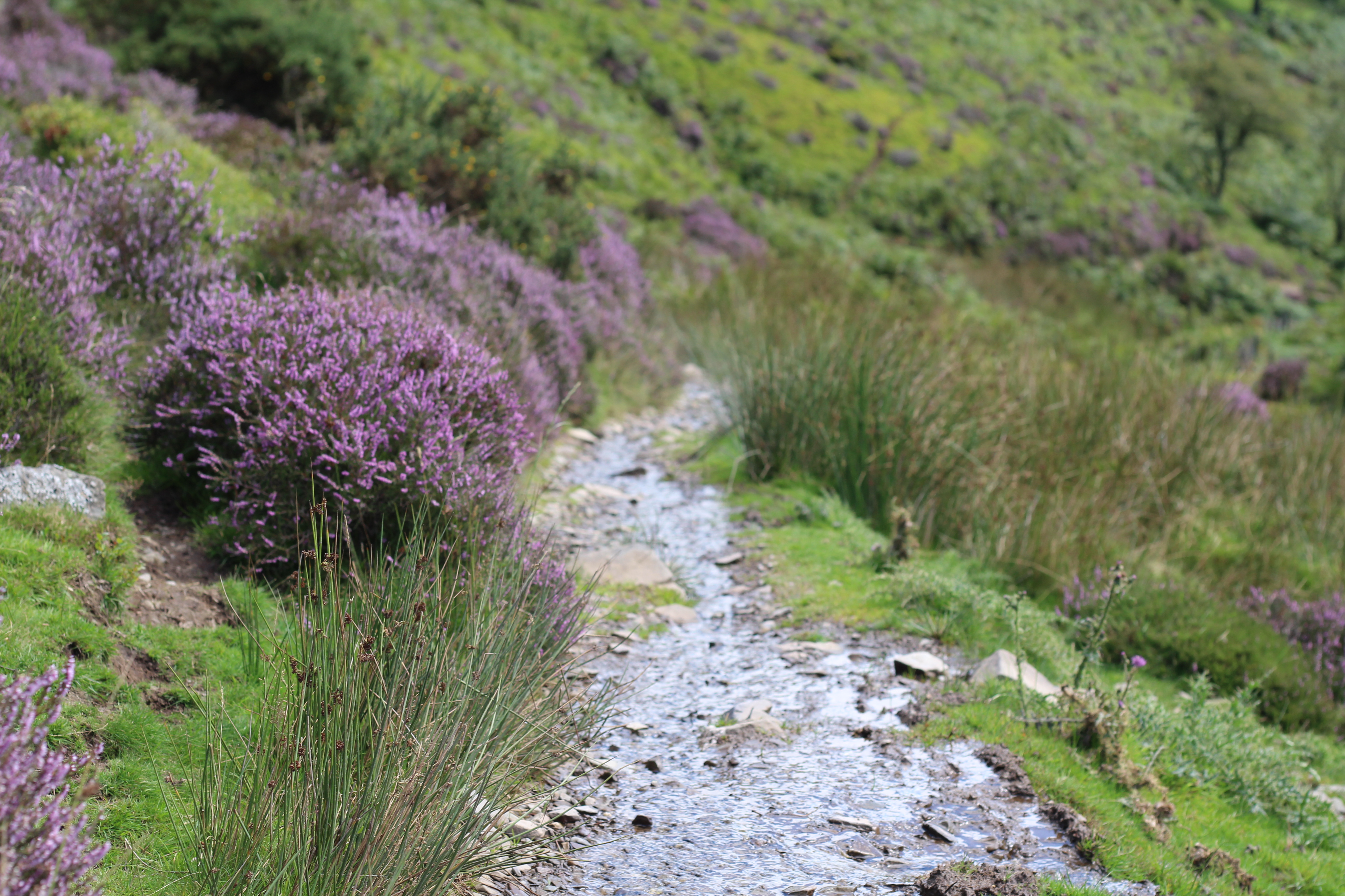 Rested and fed, time to decide on the descent. For previous ones, I’ve used The Burway, Carding Mill Valley, The Batch, and Minton Hill. A different one today – Minton Batch. Different as a descent that is, having once attempted to ascend Long Mynd via it. I say attempted as it was the scene of another of my bikepacking stories. I was headed for a camp spot at Pole Cottage, trundling along the bridleway when I found myself in a stream. Not the the main stream that flows down the batch, but a stream nonetheless. Not realising I was still on the bridleway, albeit a flooded one, I convinced myself I’d taken a wrong turn. Looking across the batch I could see a service track through a tree plantation. That was going to be my way up, despite the fact I would have to carry my bike, fully loaded with camping gear, across the main stream, over a fence topped with barbed wire, and up a steep incline while bashing my way through the bracken that covered it. Sweaty and disheveled, having reached the service track, I looked back to where I had come from, the bridleway was clear to see – yes, flooded in places, but most definitely the route to take.
