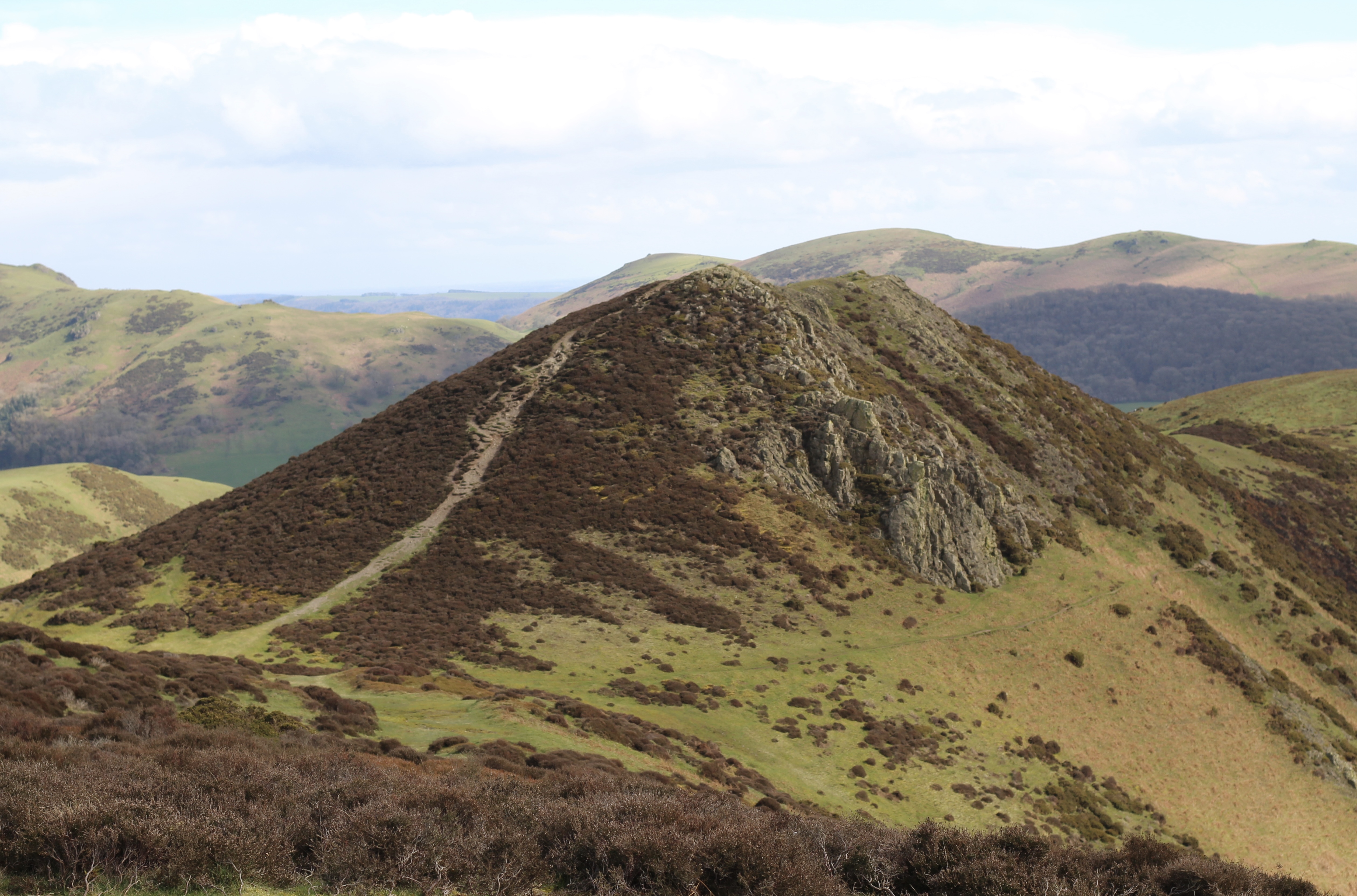 Across the top of Long Mynd towards the high point of Pole Bank, I was flying, it felt effortless. The gruelling climb up Asterton Bank must have untapped unknown reserves of energy. It was really quiet too, no wind whistling back across my ears. Ah, yes, I was headed north east, the prevailing wind was on my back. A tailwind the reason for the ease of the traverse across Long Mynd’s upper slopes.