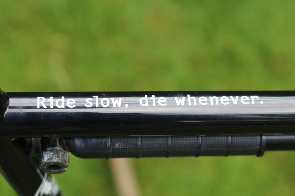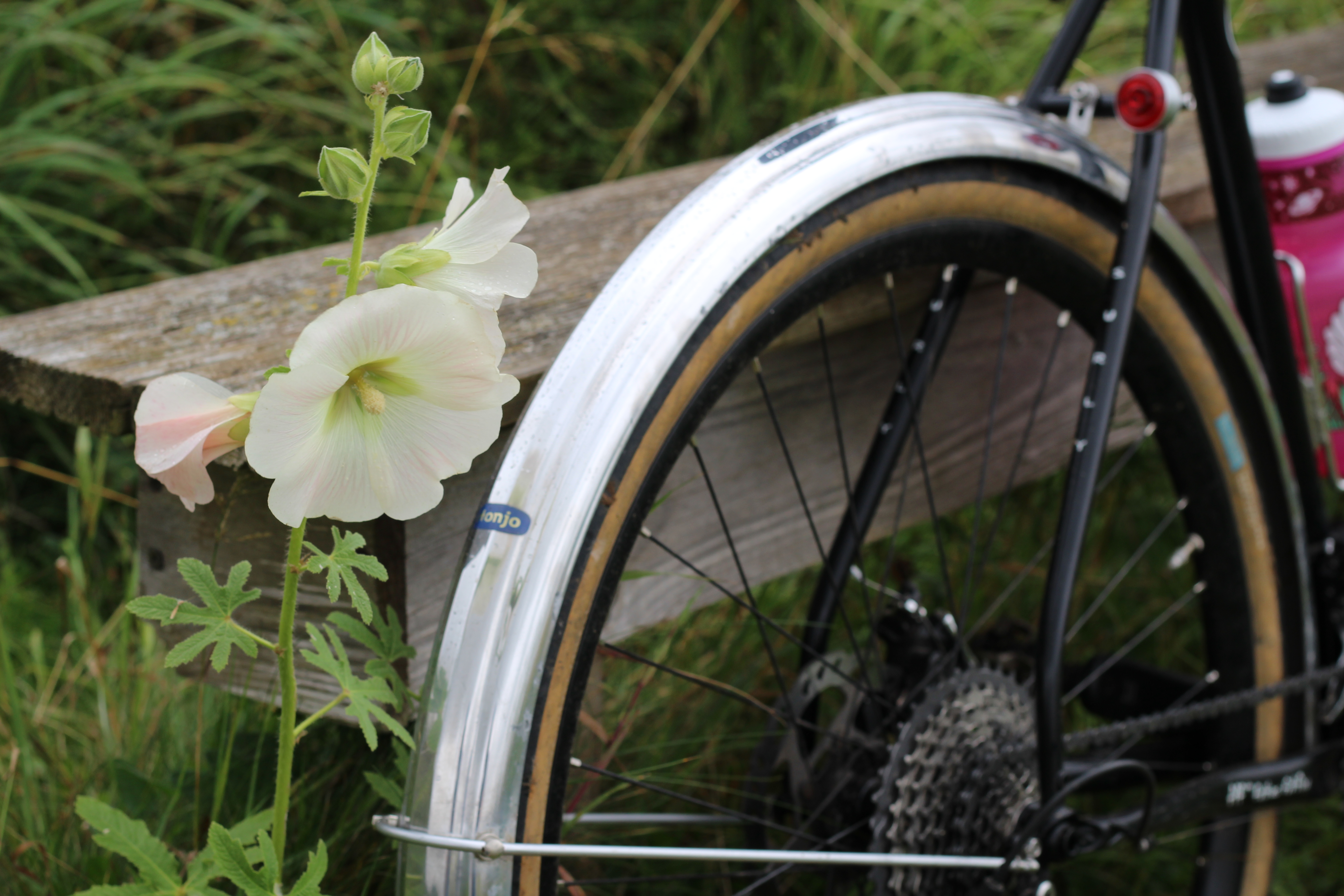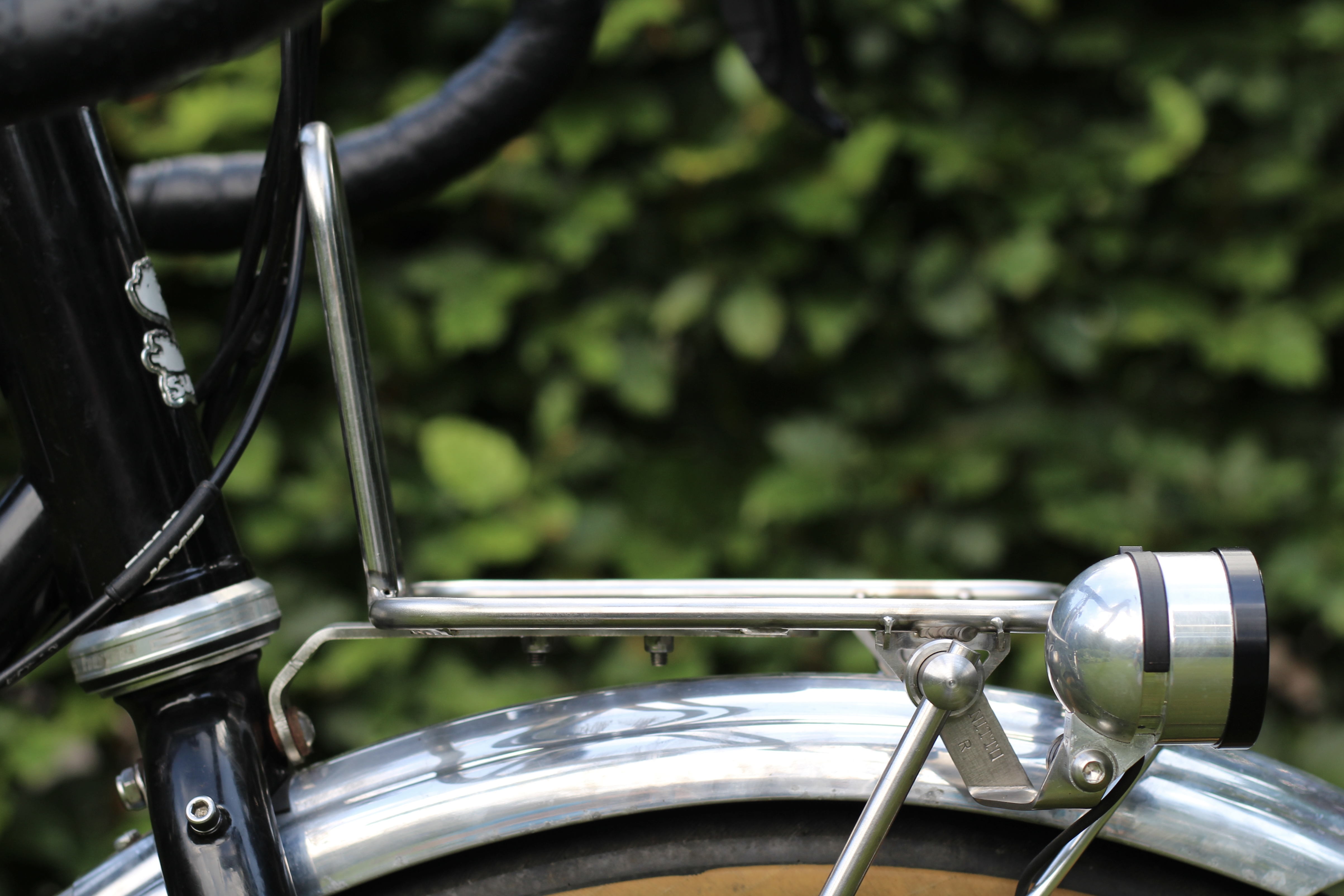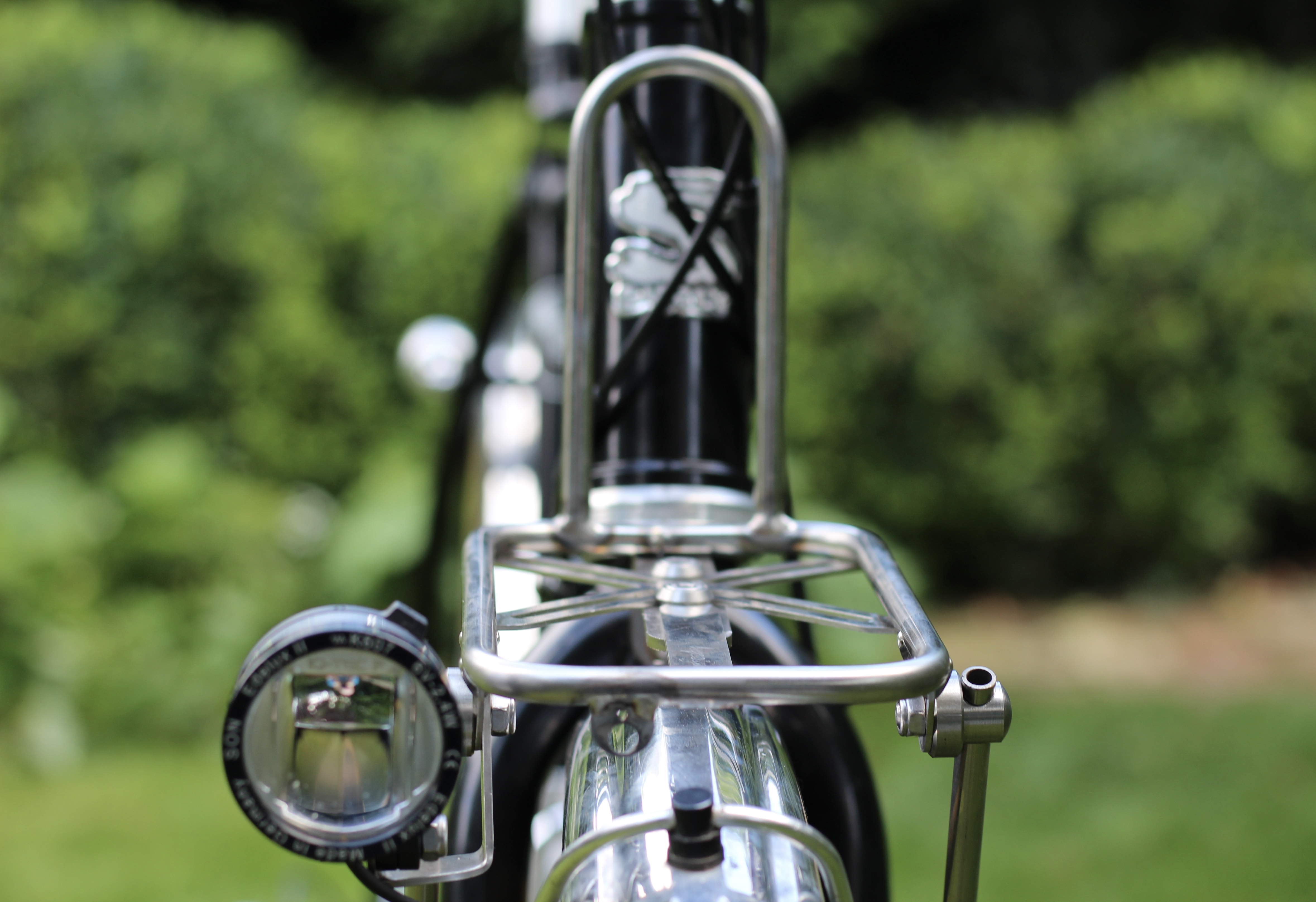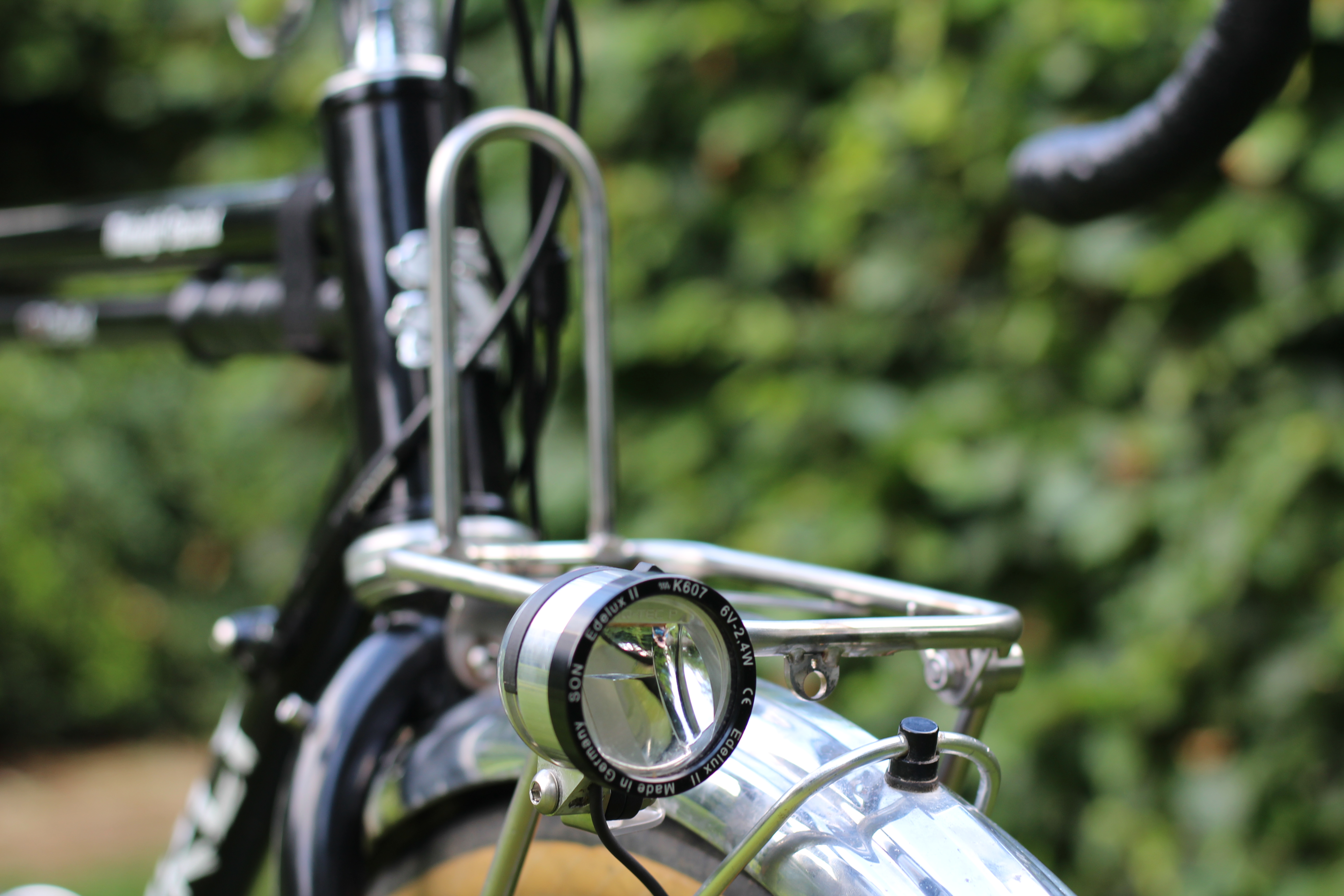 Neglected in favour of The Green Bike of late, The Black Bike has undergone some changes. The black headset has gone, a more aesthetically pleasing silver one now in place, and with a short credit card tour in Wales on the horizon, I’ve added a front rack to support the randonneur bag that usually lives on The Purple Bike (That Is Also White). With the addition of saddlebag, I should have enough carrying capacity for the tour. I went with a Hyacinth Wild Child, bought from one of my go to bike shops, Freshtripe. The lamp holder is a Nitto.