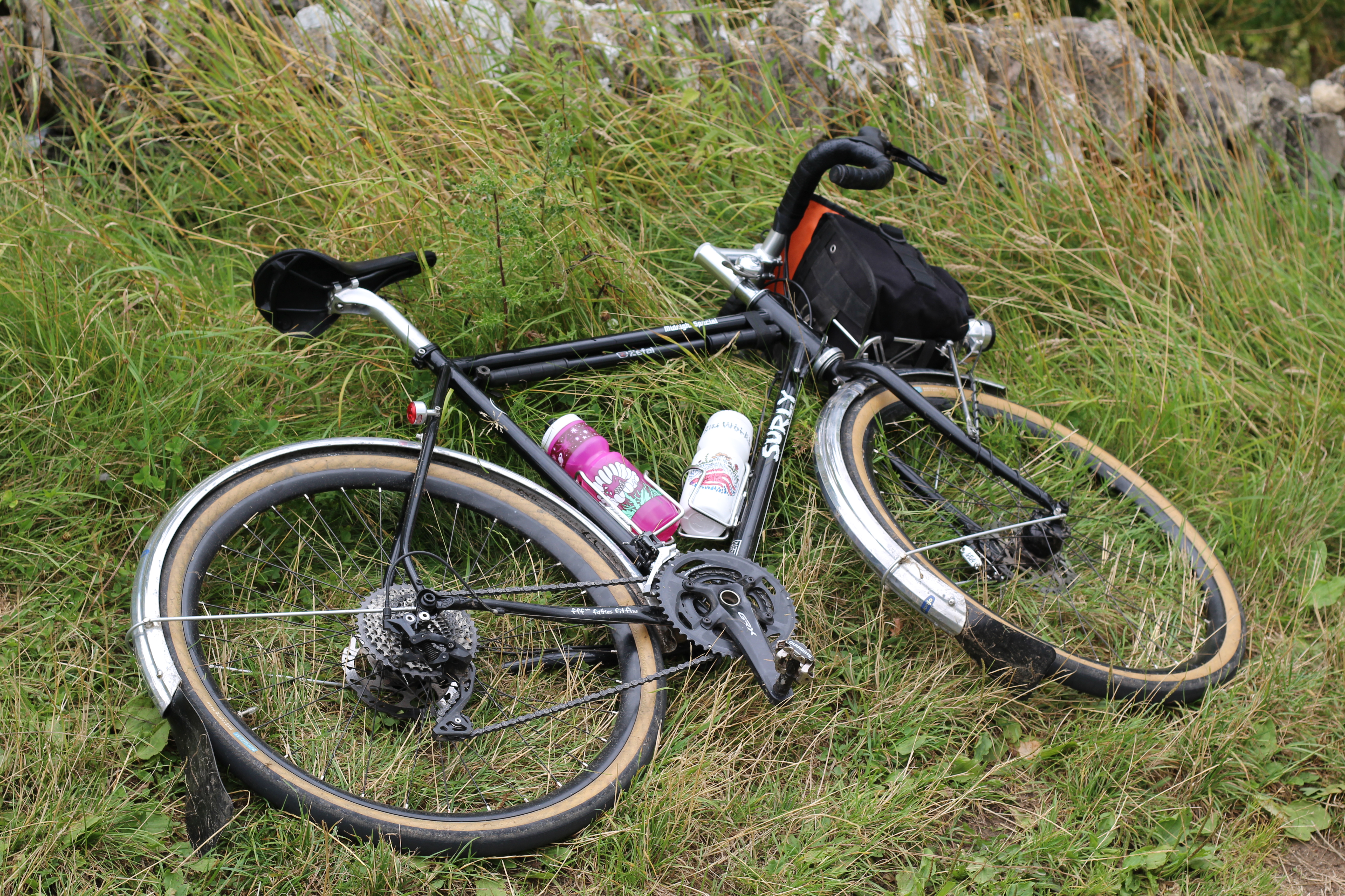 It’s evolved over the years – some parts purloined from other bikes, some parts new, some parts that shouldn’t work together but do (a 105 rear derailleur and a cassette with a 40 tooth cog).