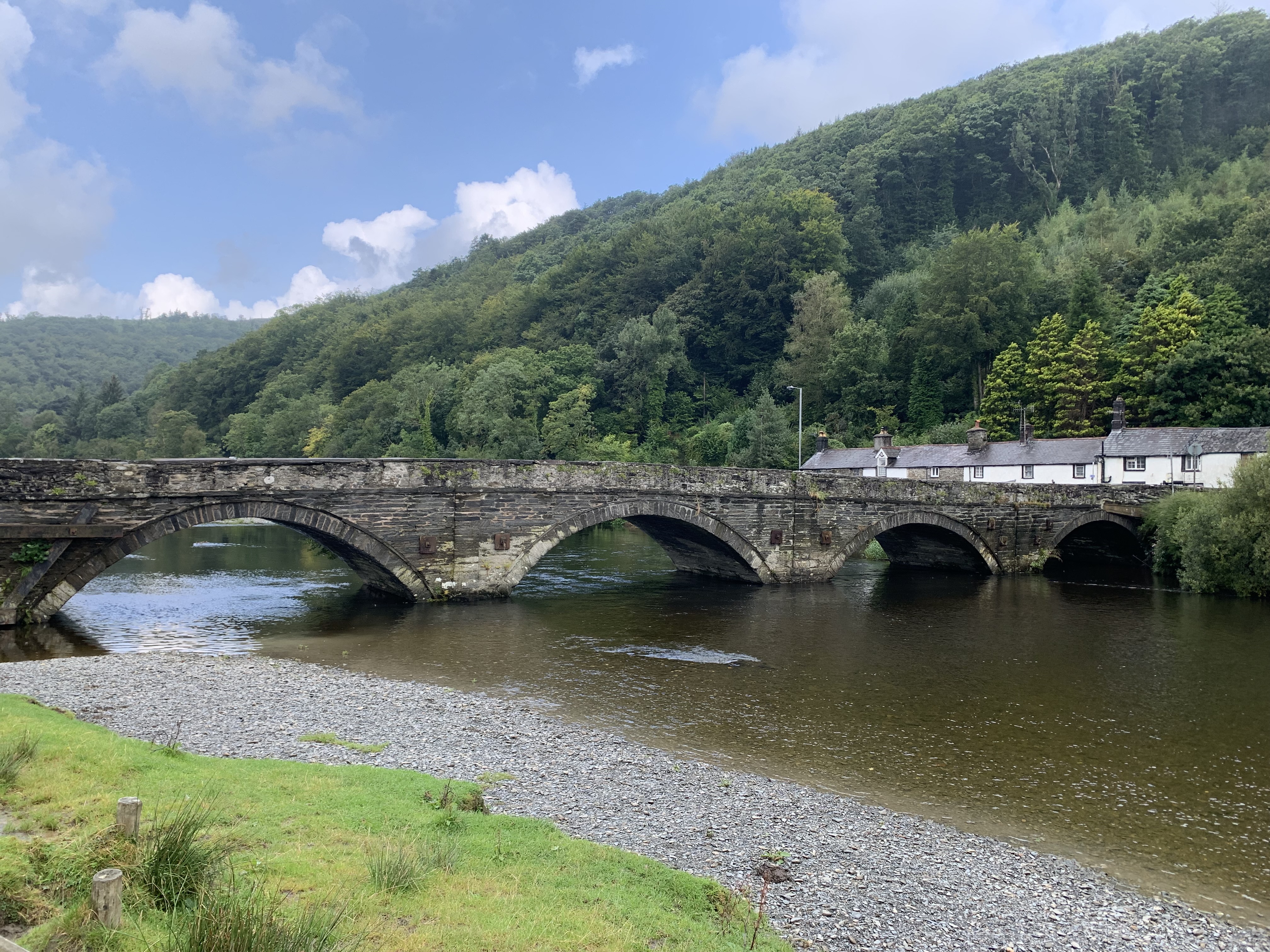 The plan had been to stop in Machynlleth for a caffeine fix, but it felt busy, noisy – being at the junction of two A roads there was a lot of traffic. I pressed on and was soon headed up the Dyfi Valley, ignoring the A road and taking the deserted lane that runs parallel to it. Quiet, untaxing undulations, sunshine (well, some), the prevailing wind behind – good riding – yesterday’s travails banished. The miles were passing far quicker on the second day – legs still good, the head in an equally sound state.