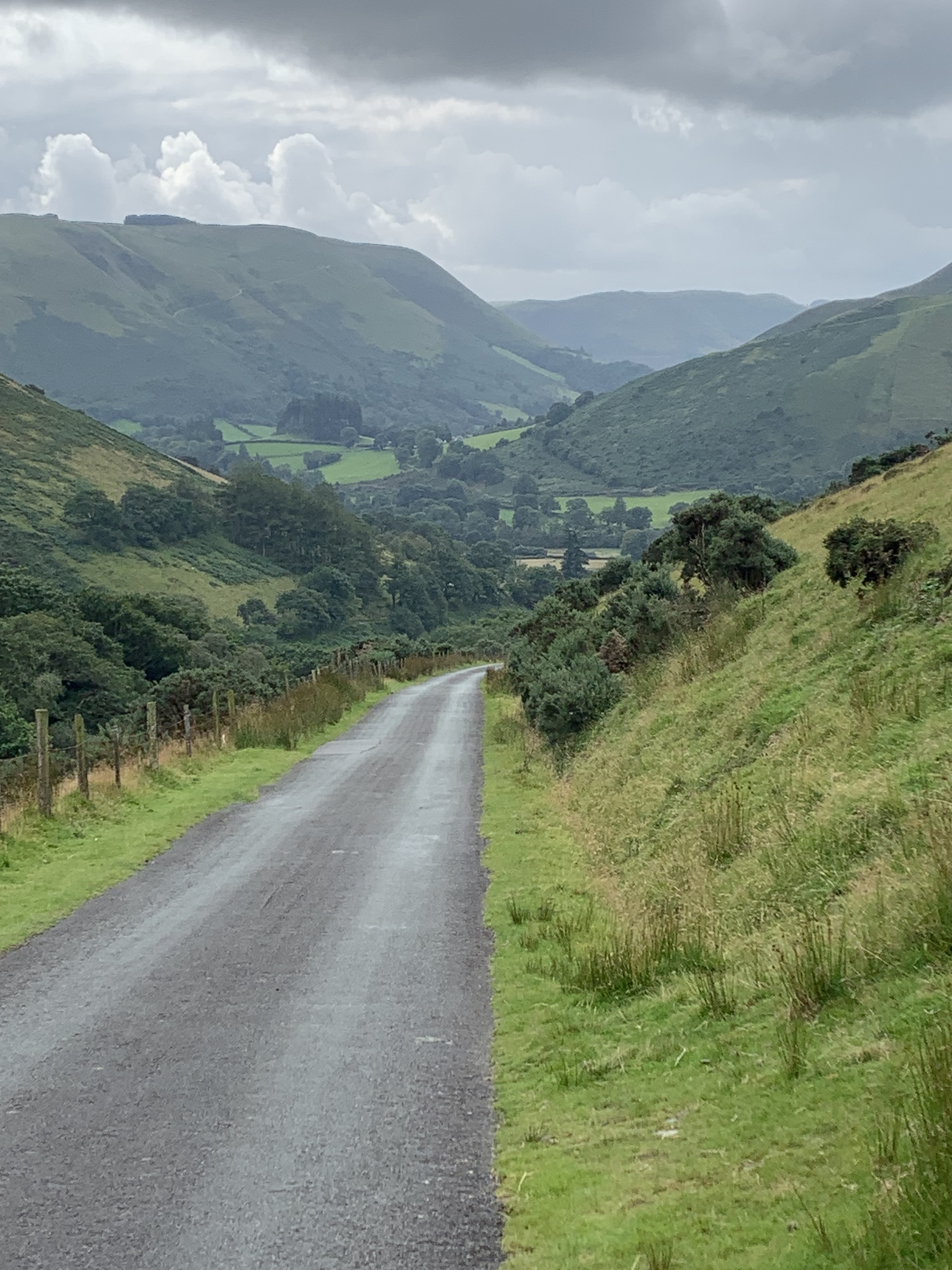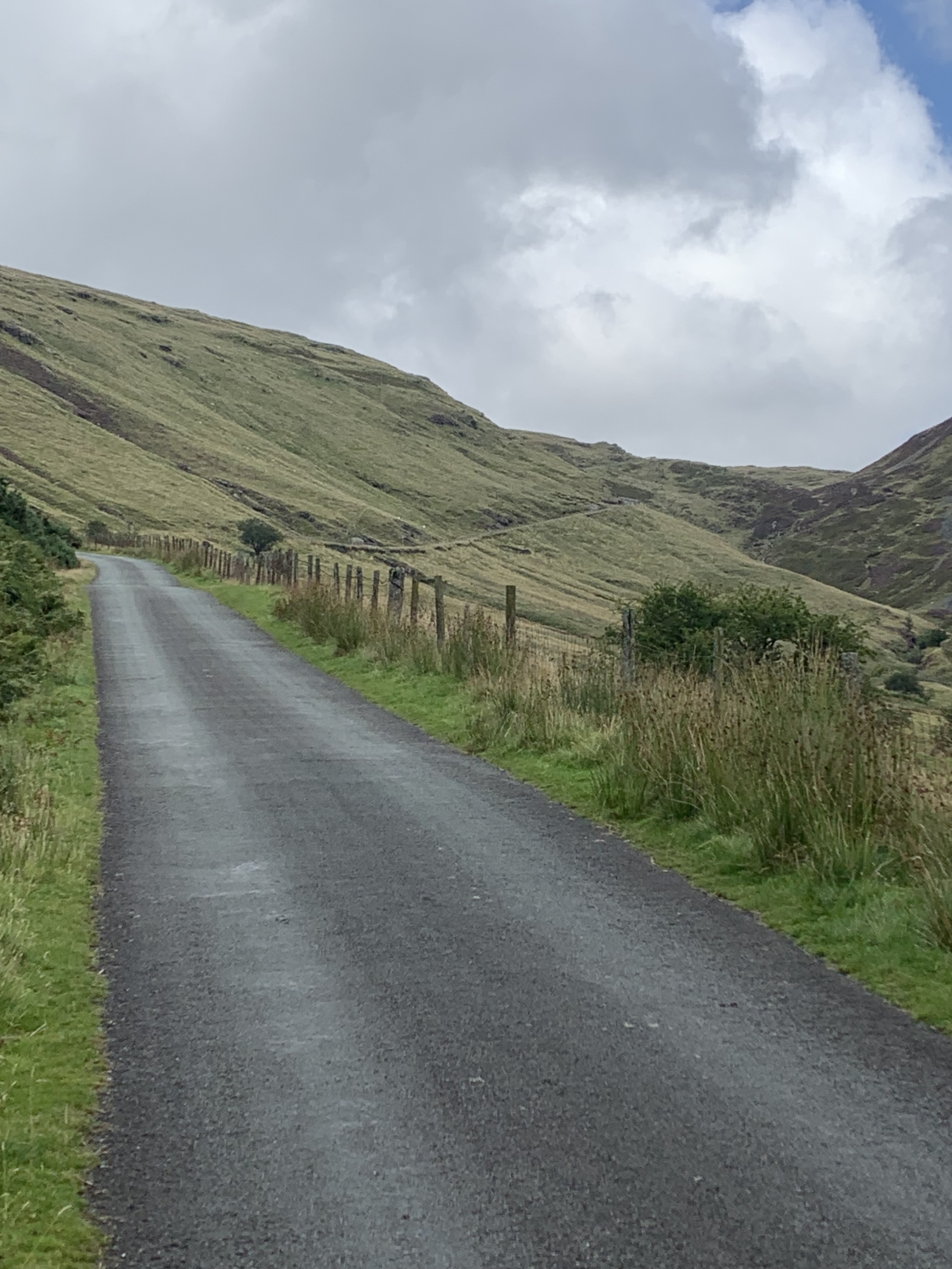Day Two: much better. Better weather, better route, better things going on in the head (the third no doubt in part due to the first and second). Although I soon discovered I had not switched my camera off the previous evening. A flat battery meaning the phone would have to be used – so not just my usual badly framed photos, but badly framed photos of lower resolution. It was climbing at first as I passed through Staylittle. A left a little up the road took me round Rhiw Dyfeity Fawr and on to Dylife. The reward for these initial efforts – the descent to Machynlleth. Five or six miles of it – steep and thrilling. I passed two cyclists on fully laden touring bikes heading up. Down on this road is definitely my preference – up looks a real toil.