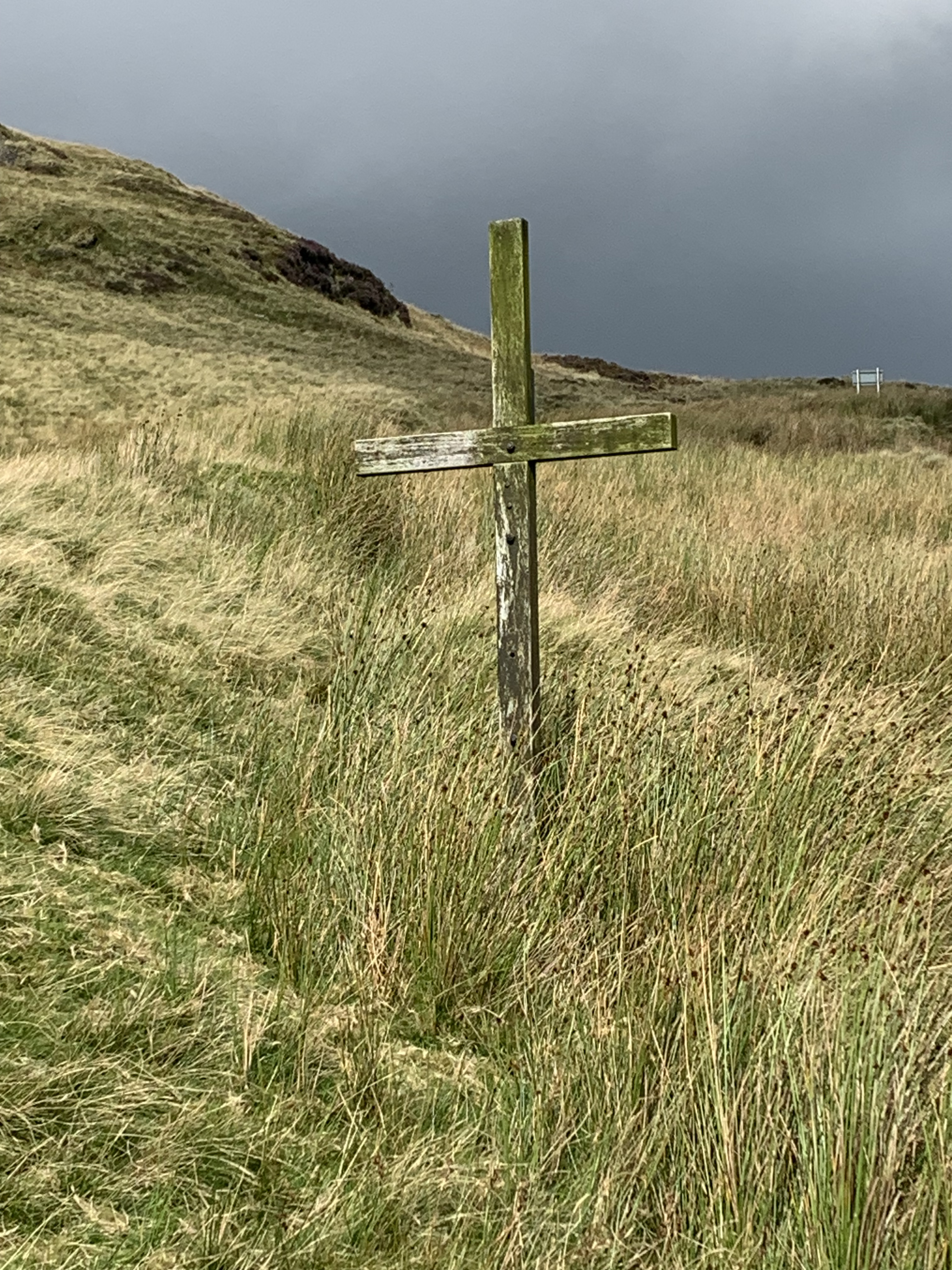 I had The Red Lion at Dinas Mawddwy in mind for some lunch – no, not open until 5. If it had been yesterday, I would have been disappointed, but feeling good and still having snacks to hand, I rode on up the Dyfi Valley – closer to its start, closer to the climb up to Bwlch y Groes. Despite the odd house and the small village of Llanymawddwy, it was deserted. I saw no one, it was just me and the bike. Little thinking beyond reading the road, deciding where to steer, deciding which gear to select. Some kind of mindlessness – an emptying, a freedom – joy. Occasional thoughts of what was to come – the climb out of the valley. A chevron-festooned ascent according to the Ordnance Survey map (three at the very start – I don’t think I’ve ever ridden a three-chevron incline). An average of 12% over two miles with sections of 20% – Hellfire Pass another name for Bwlch y Groes. It wasn’t that bad (granted I took a breather at the bit that flattens and has a cattle grid). That three-chevron start was fine, despite the weight of full-to-the-brim bags. The worst bit was a two-chevron affair near the end – I imagine because it was near the end. But it was no Asterton Bank – that’s a ridiculous climb. Shorter than Bwlch y Groes but it touches 23% at times, and is just goes straight up the side of Lond Mynd, and being straight, the pain is all too plain to see. The climb to Bwlch y Groes curves, teasing out the challenge, and the views, well, they’re why I seek out such places to cycle. A cross at the top, signalling an old pilgrimage route. I sat and stared – a sublime view back down the valley. One of those moments to get lost in.