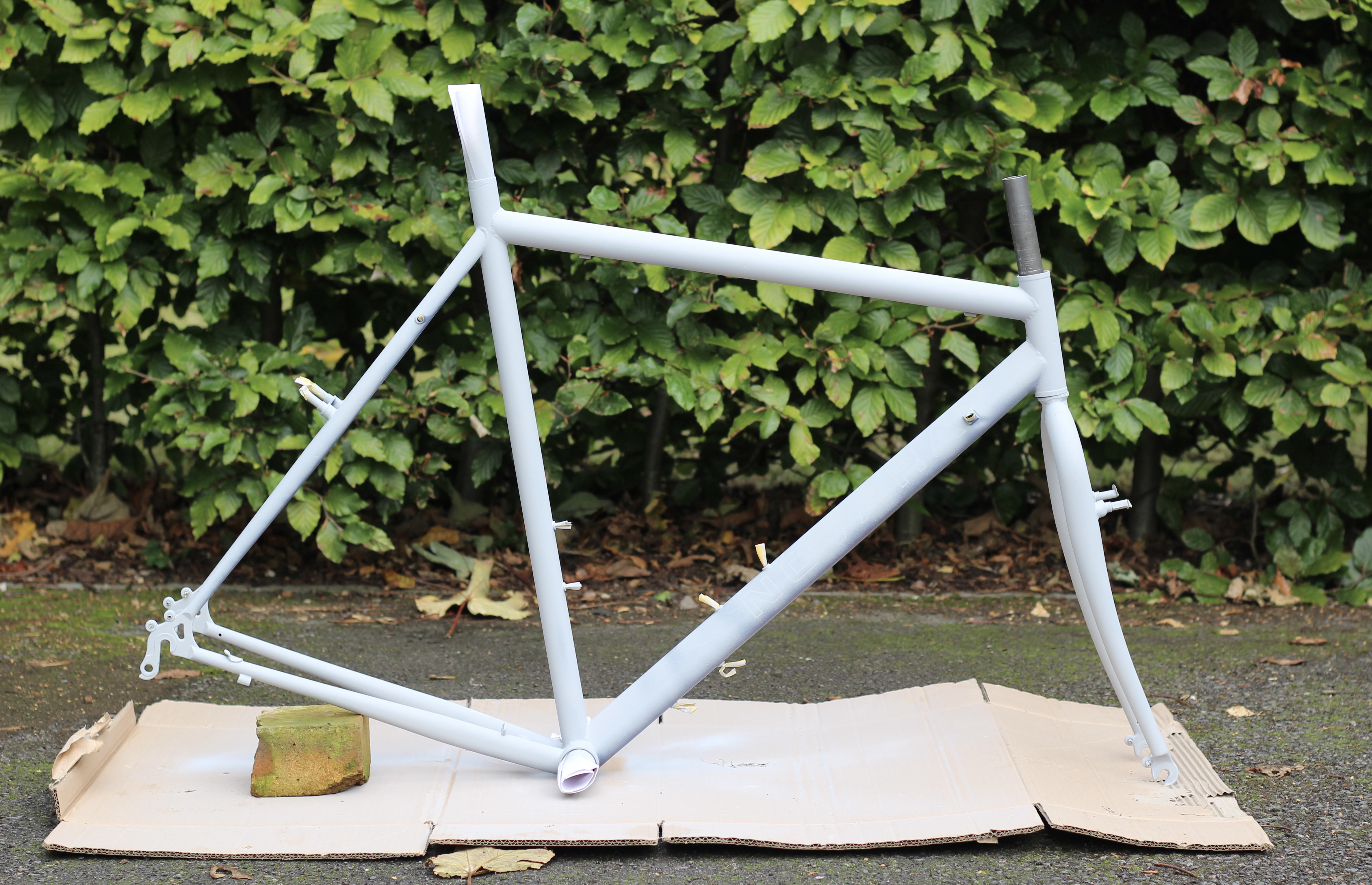 The famished elephant in my own room of abundance – bikes and their bits. I’ve got too many bikes, and too many spare parts. Ridding myself of more than half of my bikes, and still I would have too many. But having built virtually all of them, there’s an investment that’s hard to walk away from – and building them satiates creative urges as much as any other interest. The latest effort, repainting a frame gathering dust, a Novara Randonee. In need of a cheap frame to build a bike to ride as part of my commute to work in a previous life, I picked it on eBay some 18 years or so ago. Having never heard of it, I had to look up the brand – an in-house one of the American retailer REI. The seller was UK based, but somehow the frame had made the journey across the Atlantic. In its favour, it’s steel, but I don’t care for the ovalised down tube, and the fork it came with isn’t original but rather some generically functional affair.