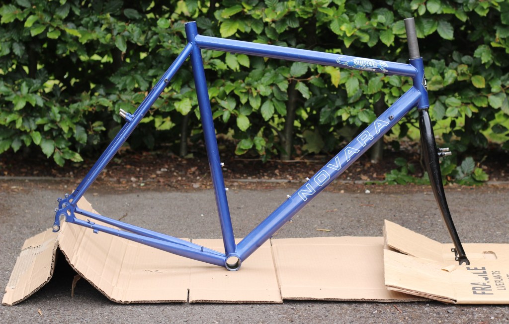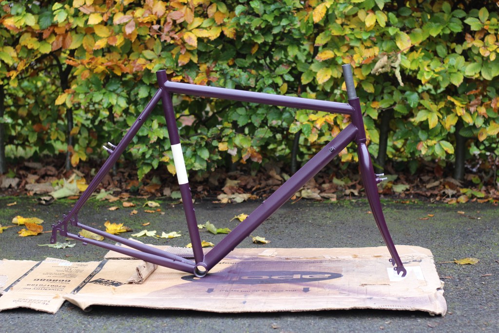 I finished my last post with a New Year’s vow of never building another bike. Ha. As if that was ever going to happen. Back in the autumn I had scratched the itch of having a go at painting a frame. Using Spray.Bike products, a blue Novara Randonee frame, long sat unused in the garage, became burgundy (or is it purple? I’m favouring aubergine) with a cream band.