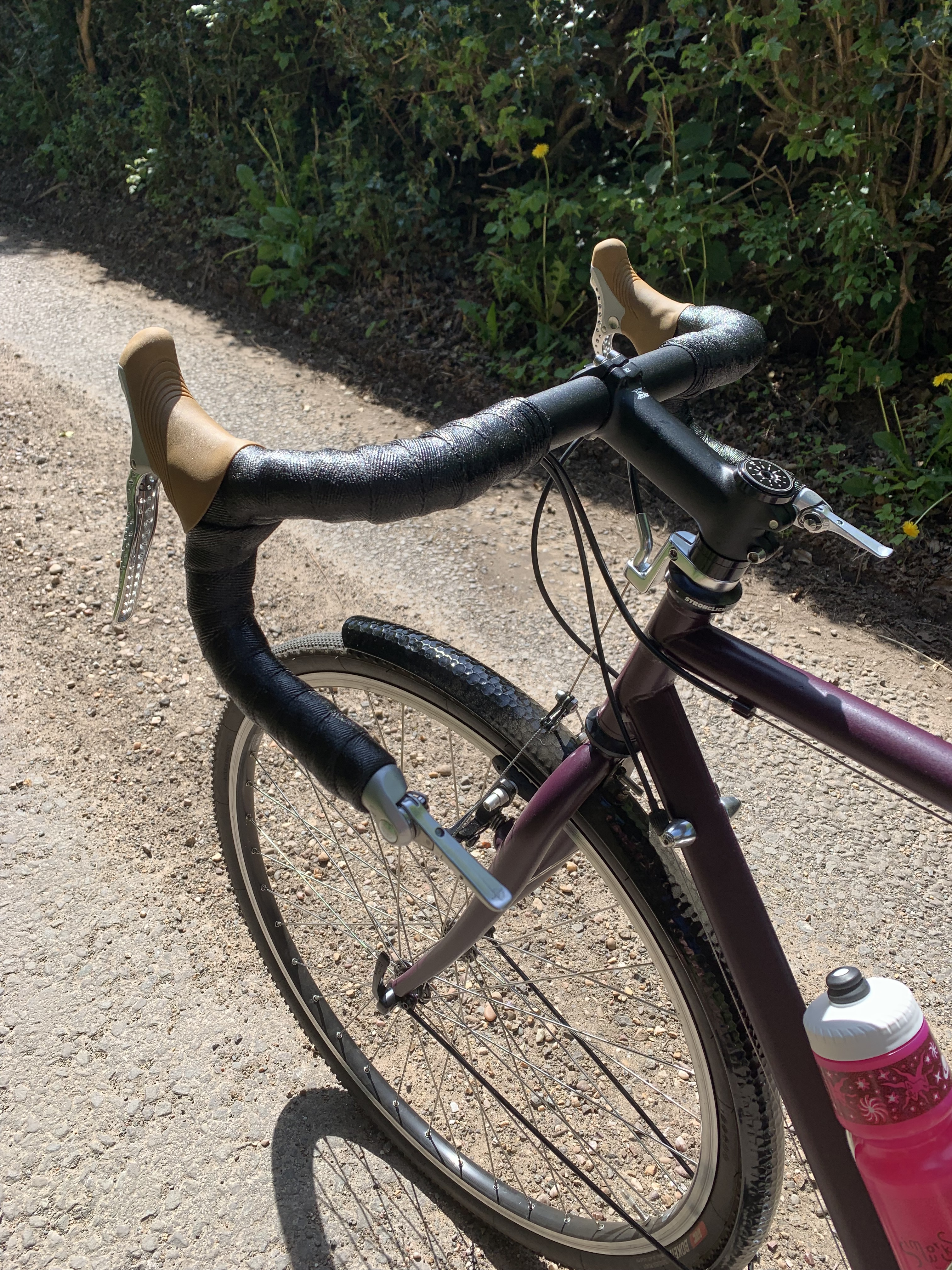For some reason I went with padded Newbaum bar tape, rather than unpadded. I’m used to the slender unpadded version: