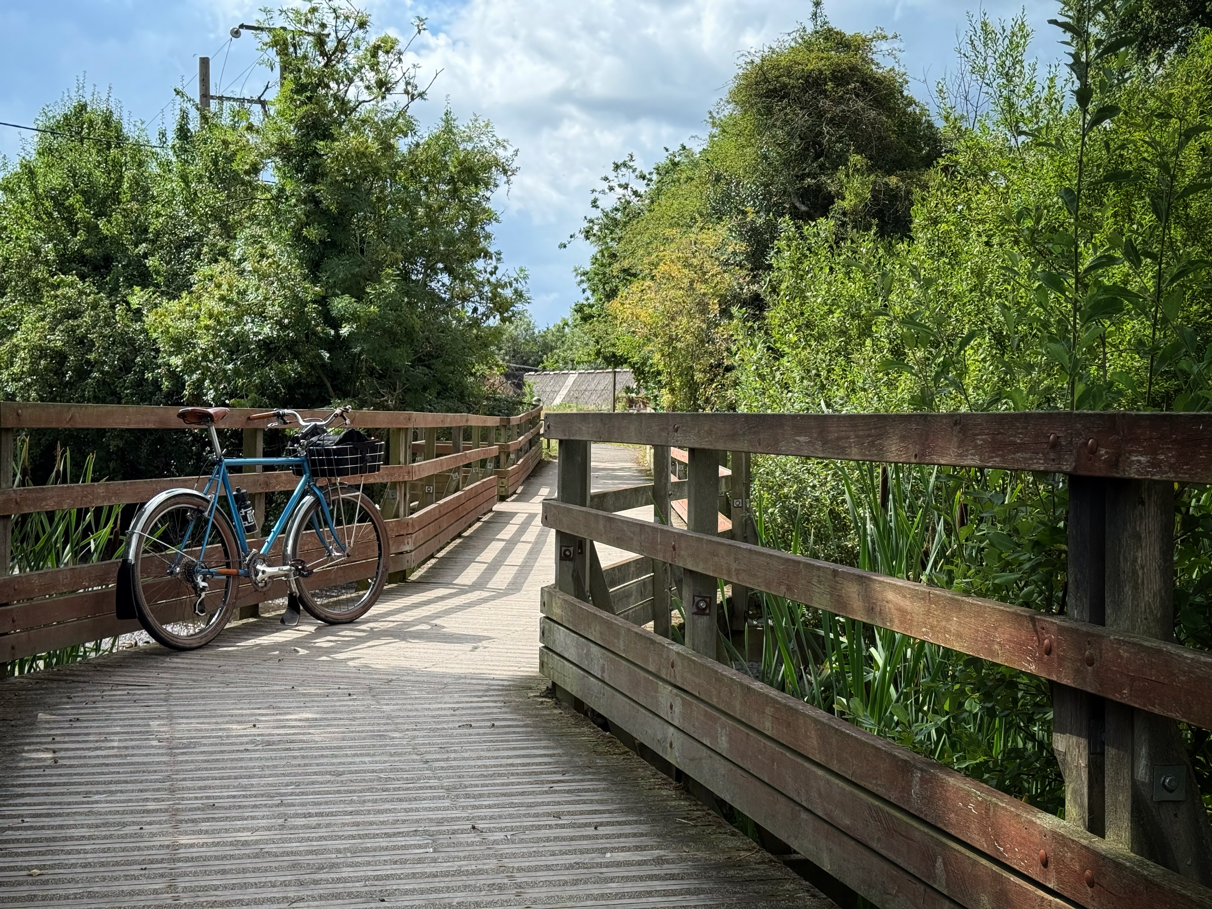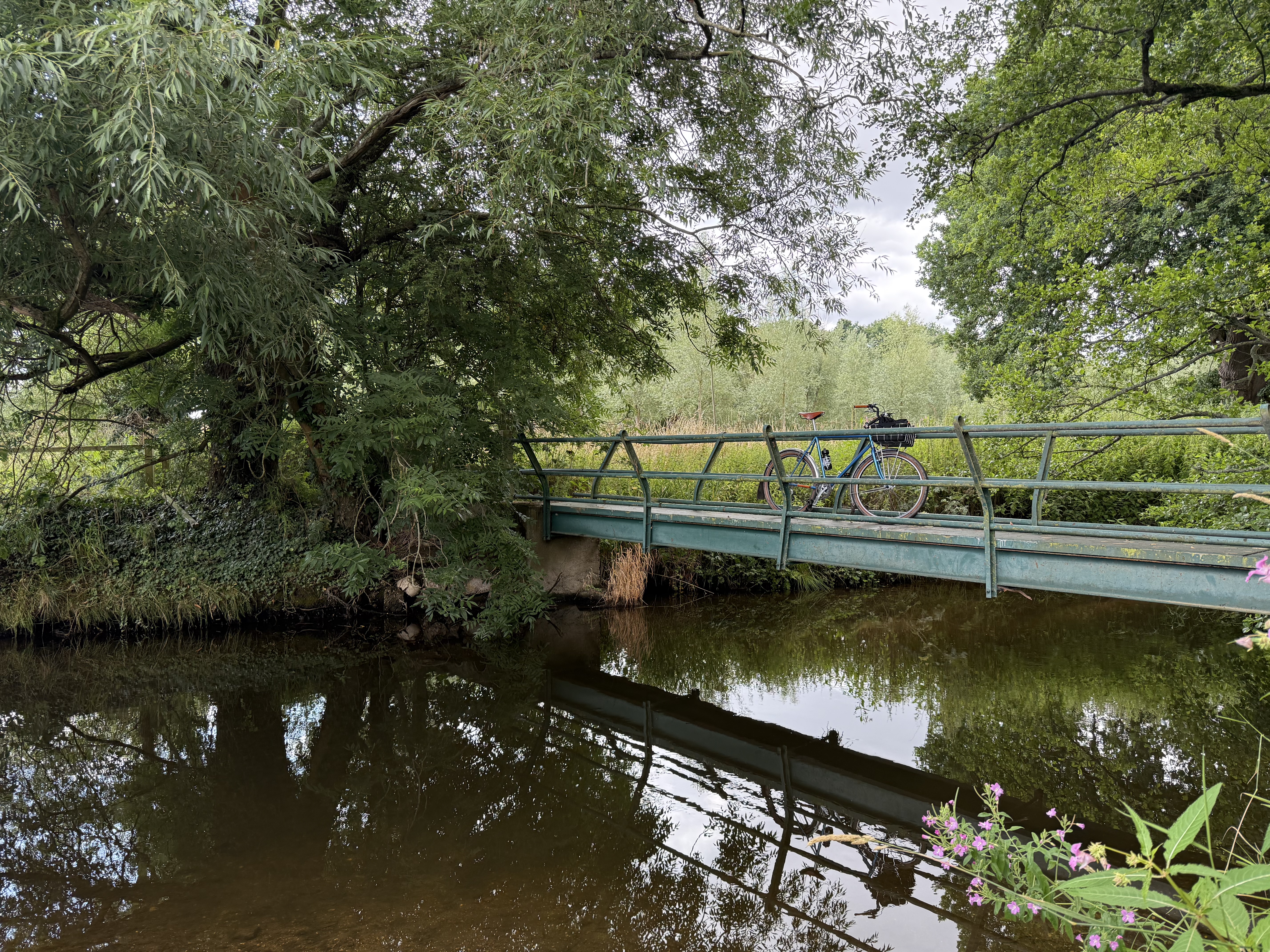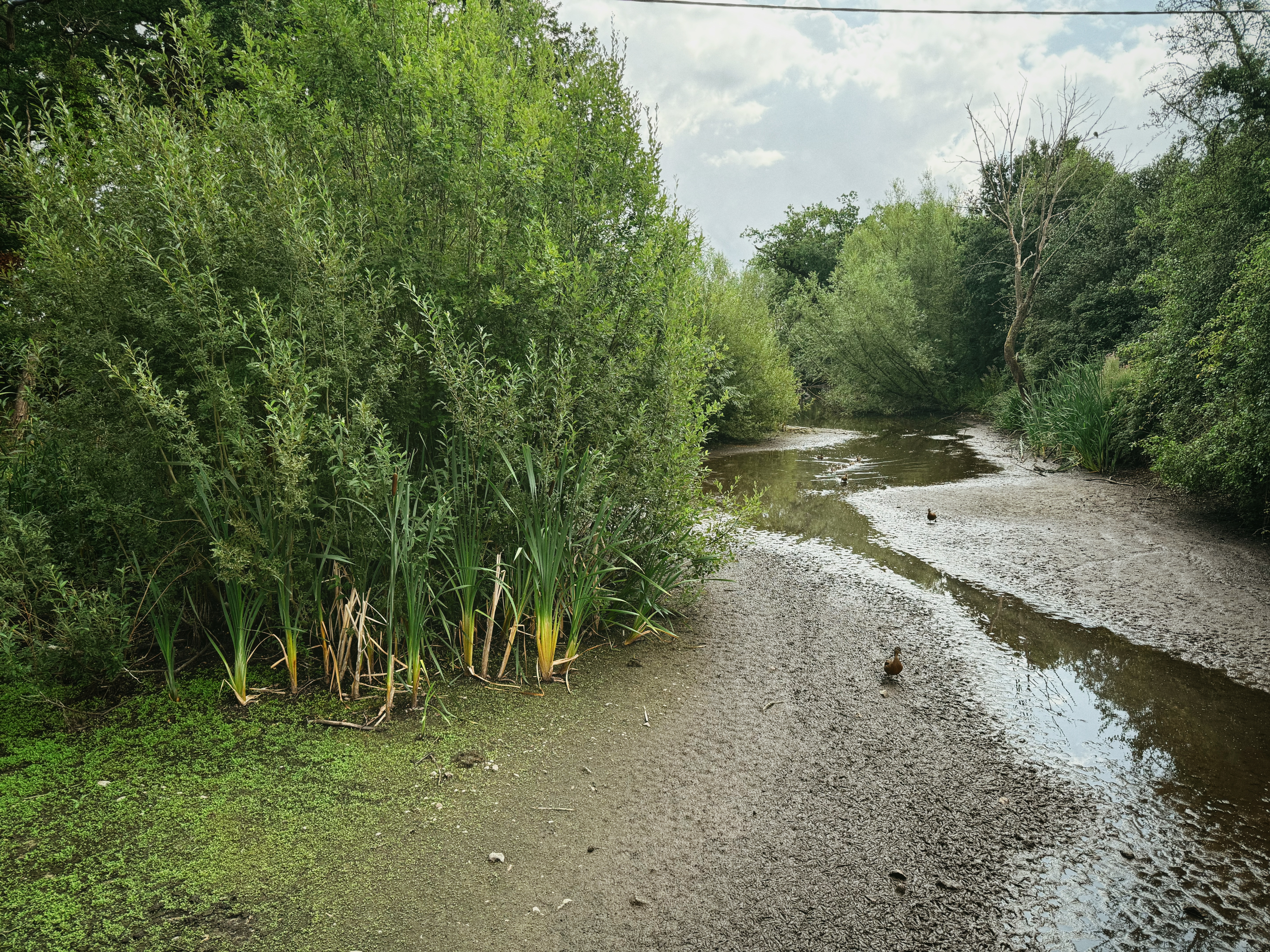 The mill pond is rainwater fed, long since cut off from a stream, and with one of the driest years on record, low. The nearby River Blythe is doing fine, and thinking better of using the ford, I used a footbridge to cross it. Despite its close proximity to home, it was the first time I’d ridden the track either side of the river. I did attempt to, from the other direction, a couple of winters past but the track was flooded and I had to turn back. Of course, now the summer break has arrived the dry weather has ended and the heavens opened. My timing was spot on though, a copse providing shelter from the thunderstorm.