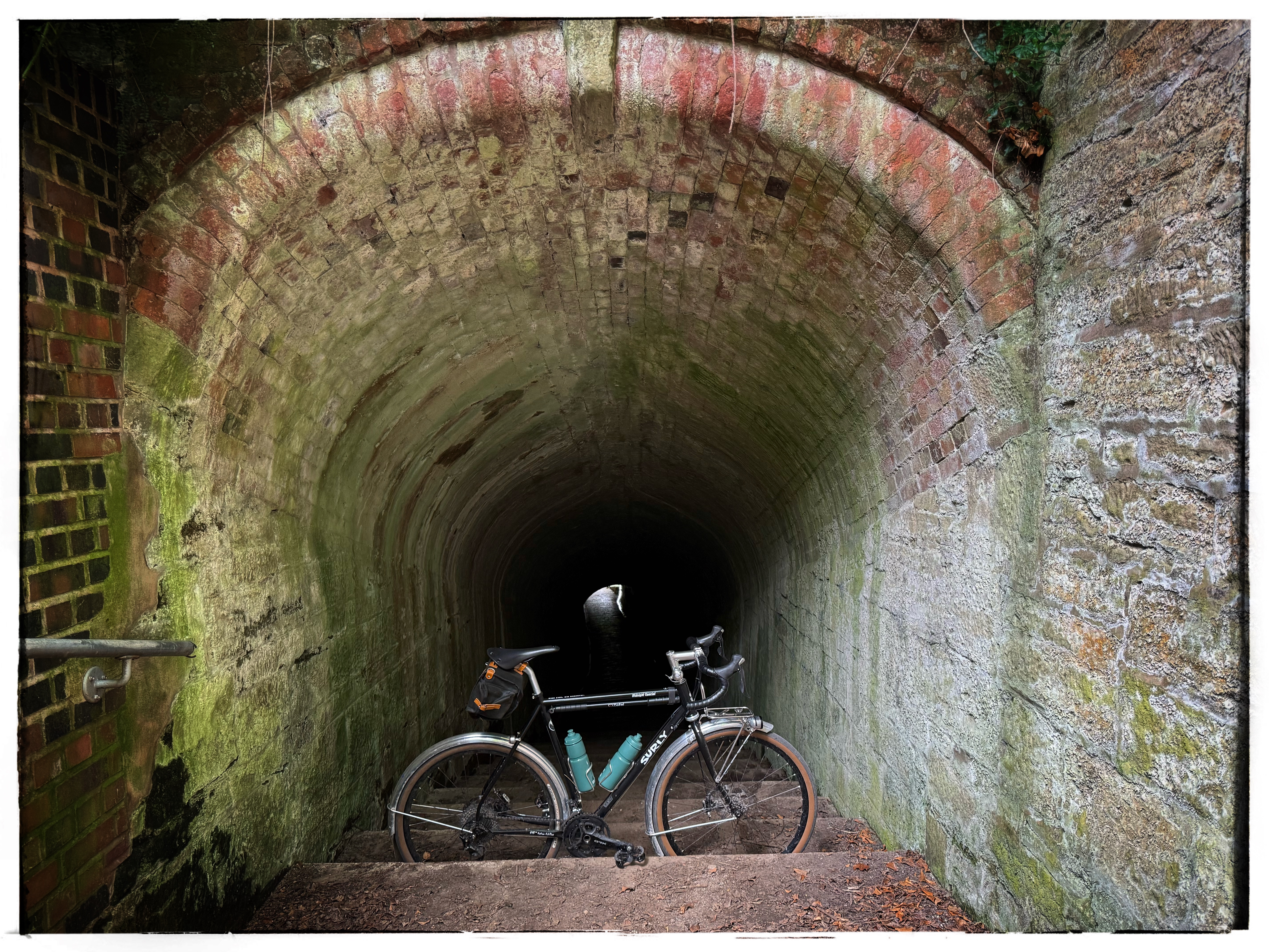 IN CONTRAST – The Black Bike. That had a recent outing too and from the off it was anything but sprightly. Headed to The Grand Union Canal, the handling was in line with that of a narrow boat (if not an oil tanker). It’s been a love-hate relationship since I’ve had it. The notorious Surly Natch tubing ensures spirited riding is a fanciful dream and with all its accoutrements, it is basically a tank. When building it, I had in mind some sort of 650b randonneur/tourer but with that tubing and lack of low trail, it’s from a nimble Rene Herse. The disc brakes mean the fork is robust in order to withstand the forces applied at its dropouts (compare the slender, tapered thing of beauty on The Green Bike). The rack adds more weight upfront too, and doesn’t handle this load as well as The Purple Bike (that is also white). Maybe it’s time to get rid. What purpose does it serve? On this ride, it worked on the slow trundle along the canal towpath, but on the sealed roads sections it was cumbersome, and it did the job during last year’s two day tour in Wales too – but can’t my other bikes do these? Or am I just angling for an excuse for a new frame? A Fairlight Faran would pretty much mean a straight swap of components, or for something that really appeals to my bike aesthetics – a Tunk.