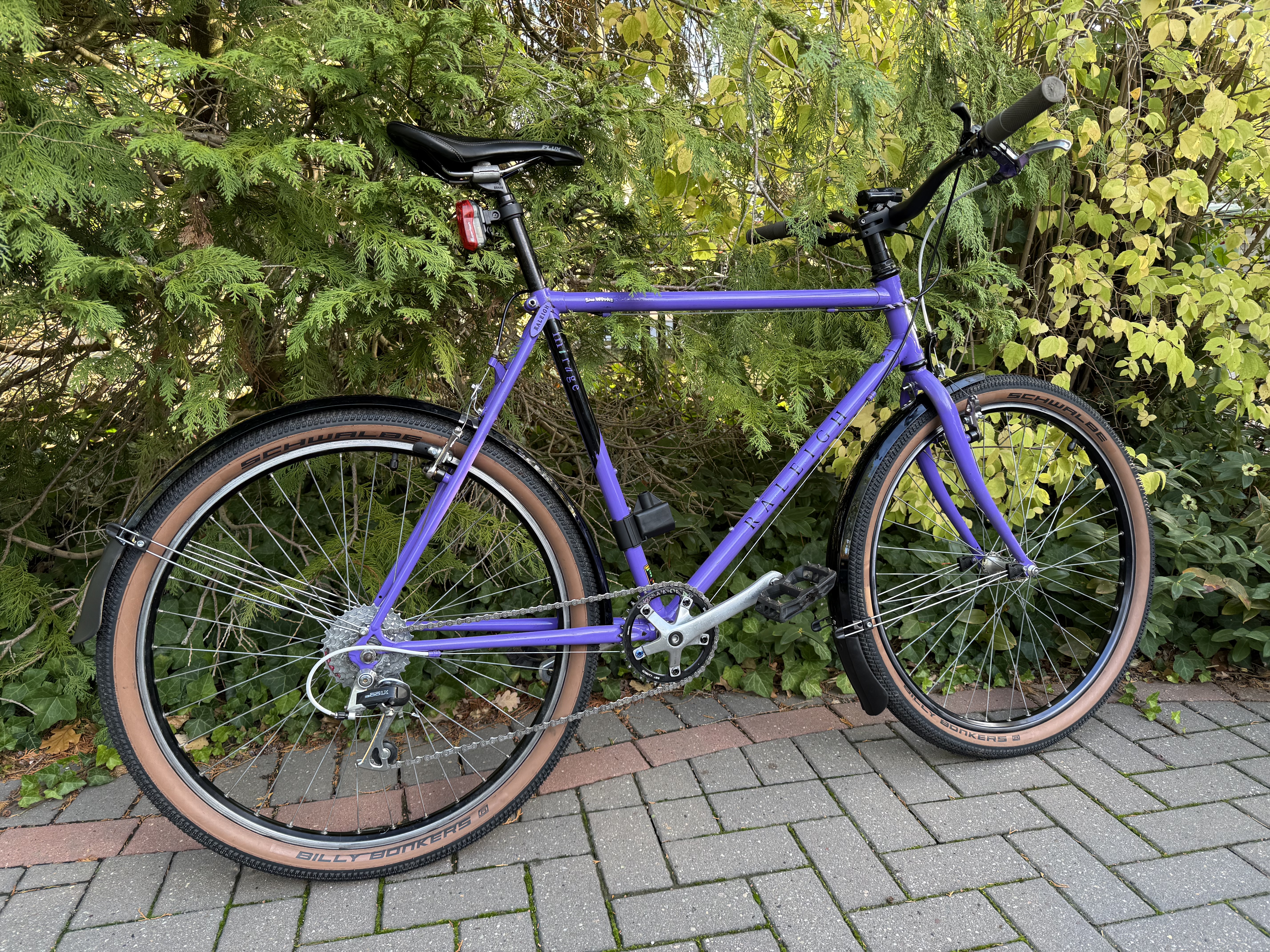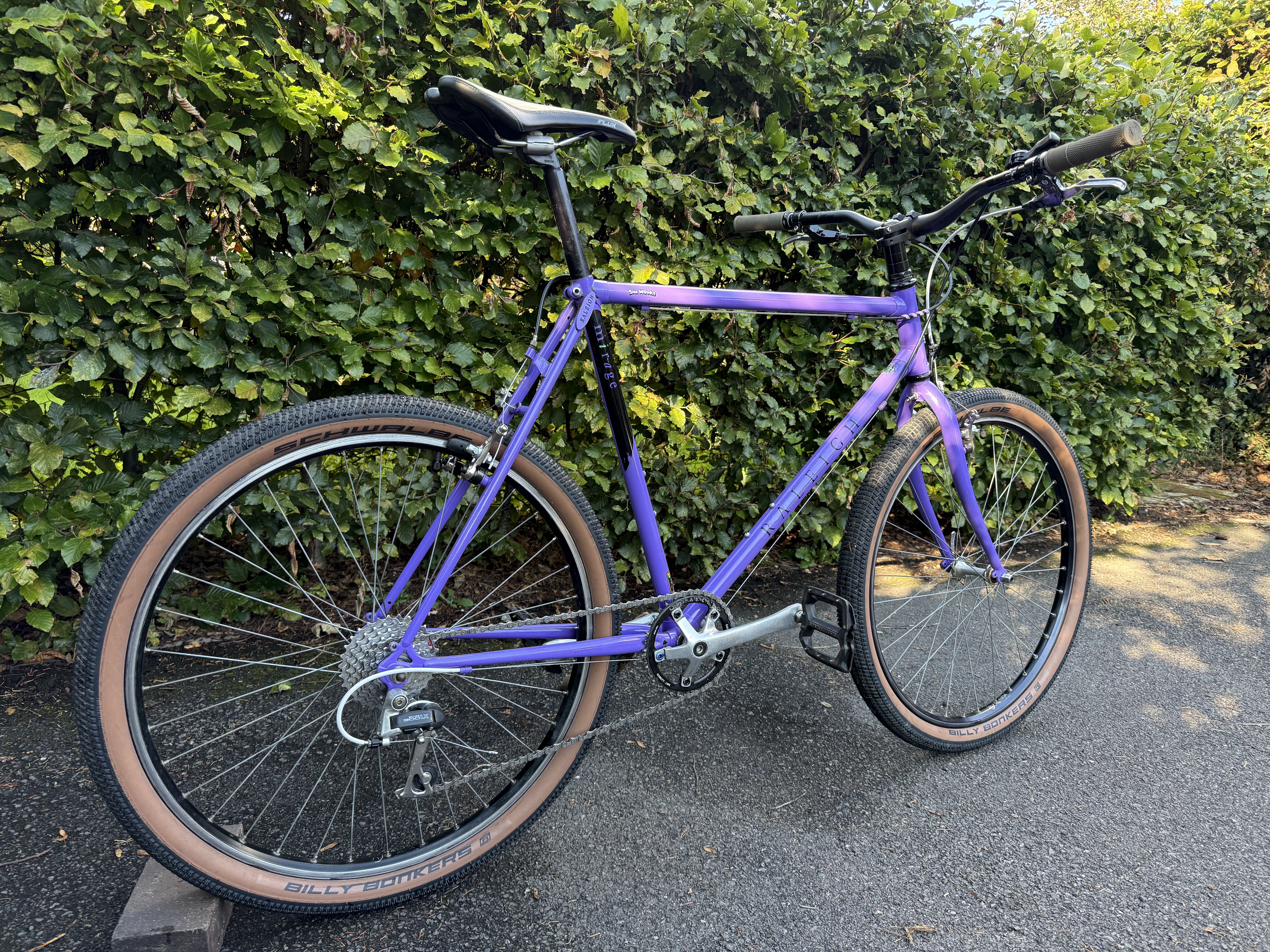 A bike came and went – a Raleigh Mirage. My son is now at university and was in need of a something to get him around. Nothing too flash, something easy to maintain and could be locked up without being too desirable to the light-fingered. I bought it locally, from a guy who does resto-mods. He’s serious – when picking the bike up, I got a glimpse of vintage Stumpjumer he had driven all the way to Southampton to collect. The paint on the Raleigh is in very good nick considering the age (late 80s/early 90s?). With friction shifting, rim brakes and a quality steel tube set – I was tempted to keep it for myself. I added some lights and mudguards but other than that it was ready to ride.