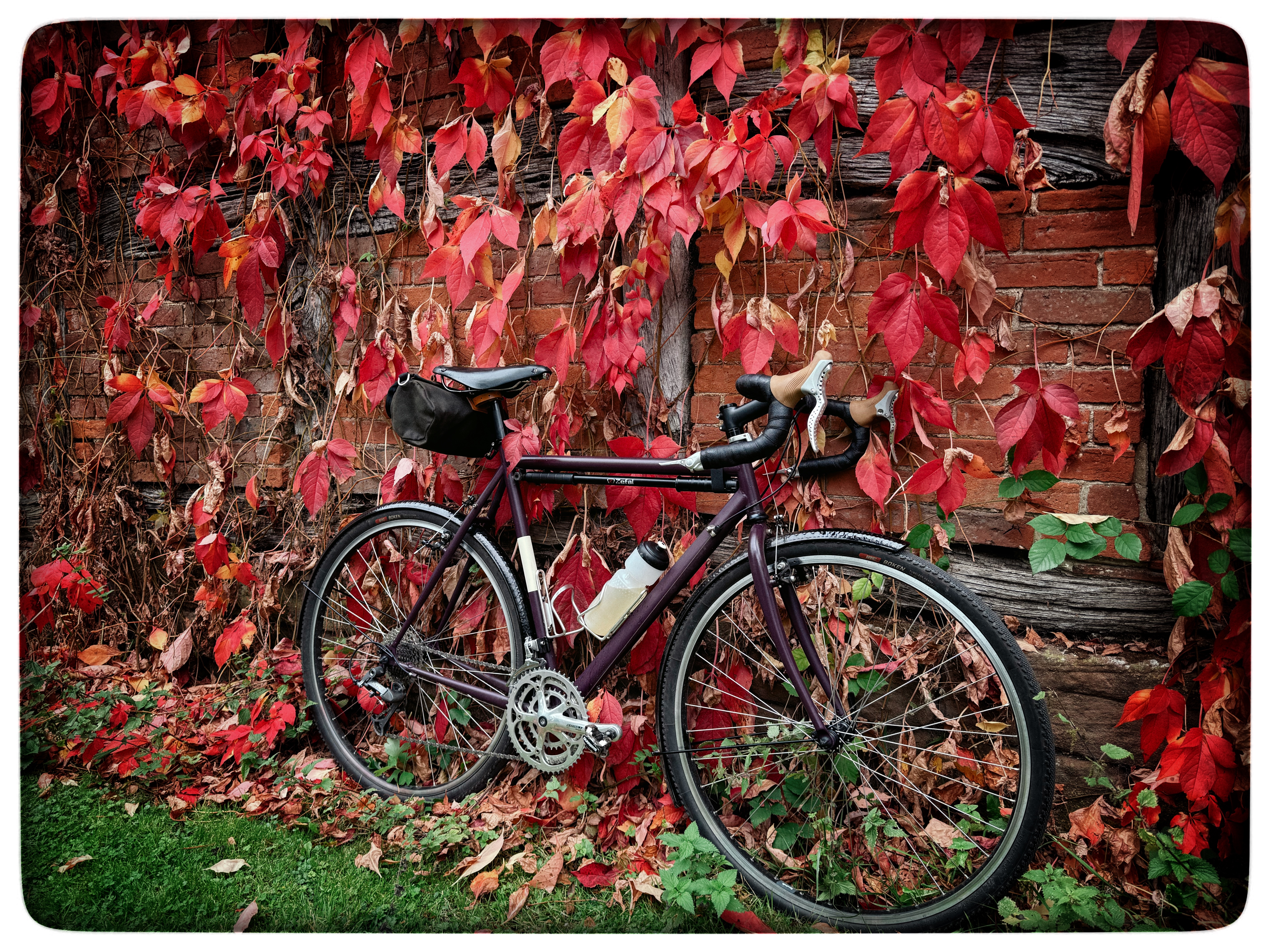 Autumn and the lanes are draped with crimson caparisons. Fleeting as it is, my favourite time of the year to cycle.