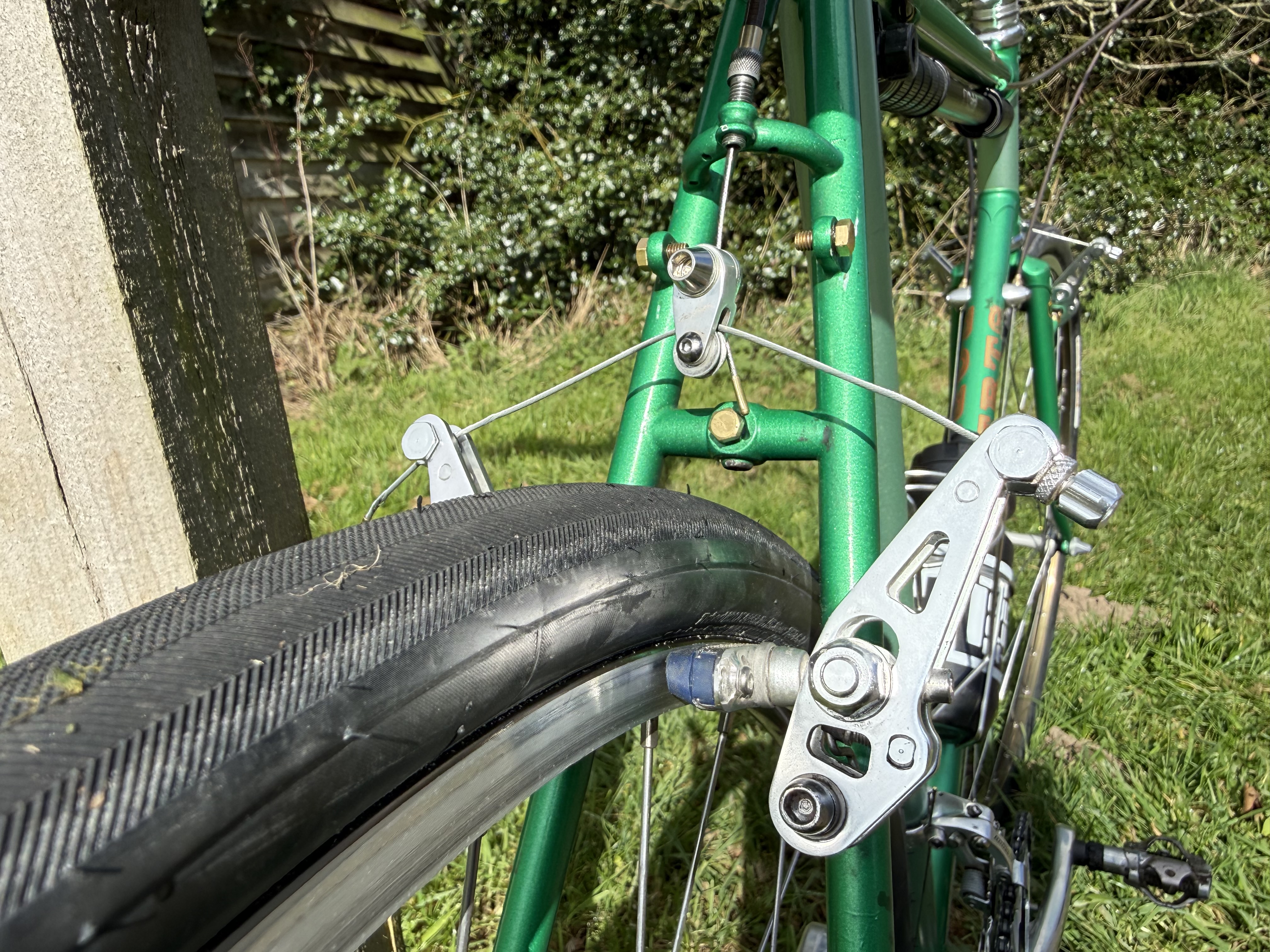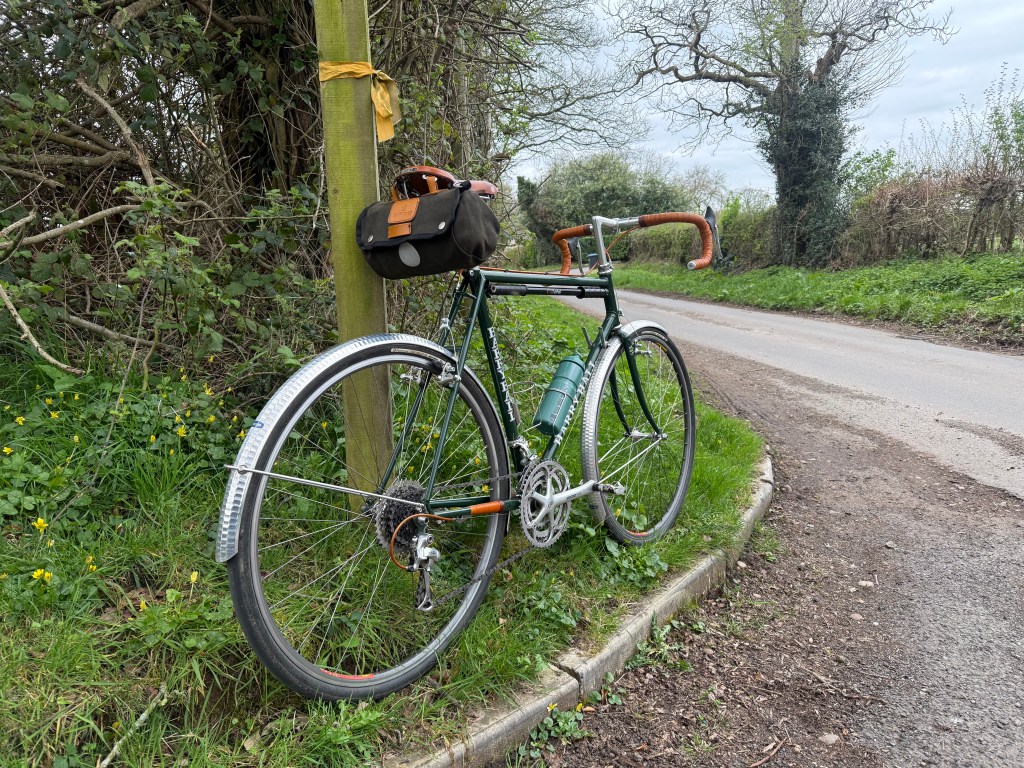 I did fit some mudguards but failure to get a pleasing fender line (the American English for mudguard works better for me in this use) sent me into one of Robert M. Pirsig’s gumption traps. I gave up and removed them. I may have another go but Spring has brought drier weather and I ventured out exposed. It may be the time off the bike but surely the skinnier and superior tubes to those of The Burgundy Bike made the ride especially fine. Interest in cycling restored.