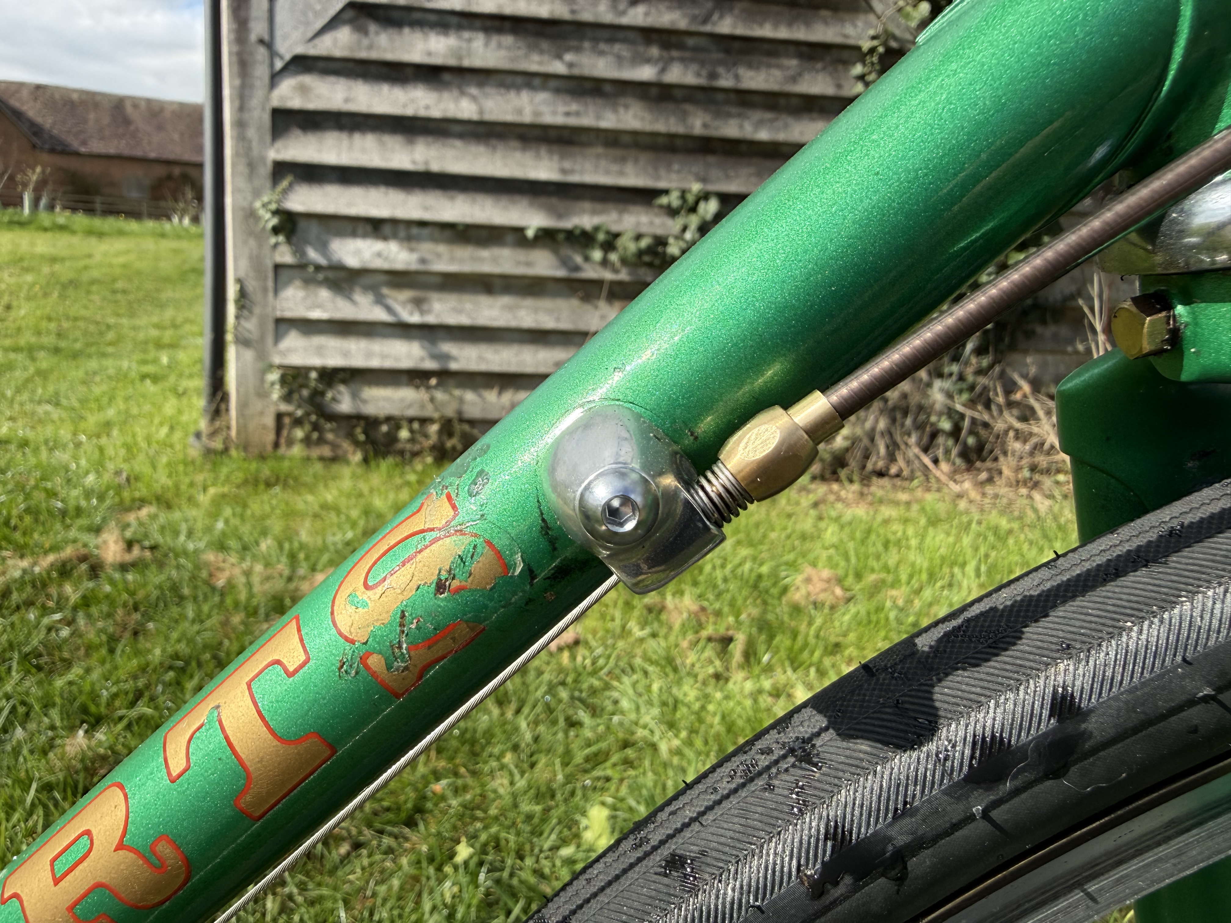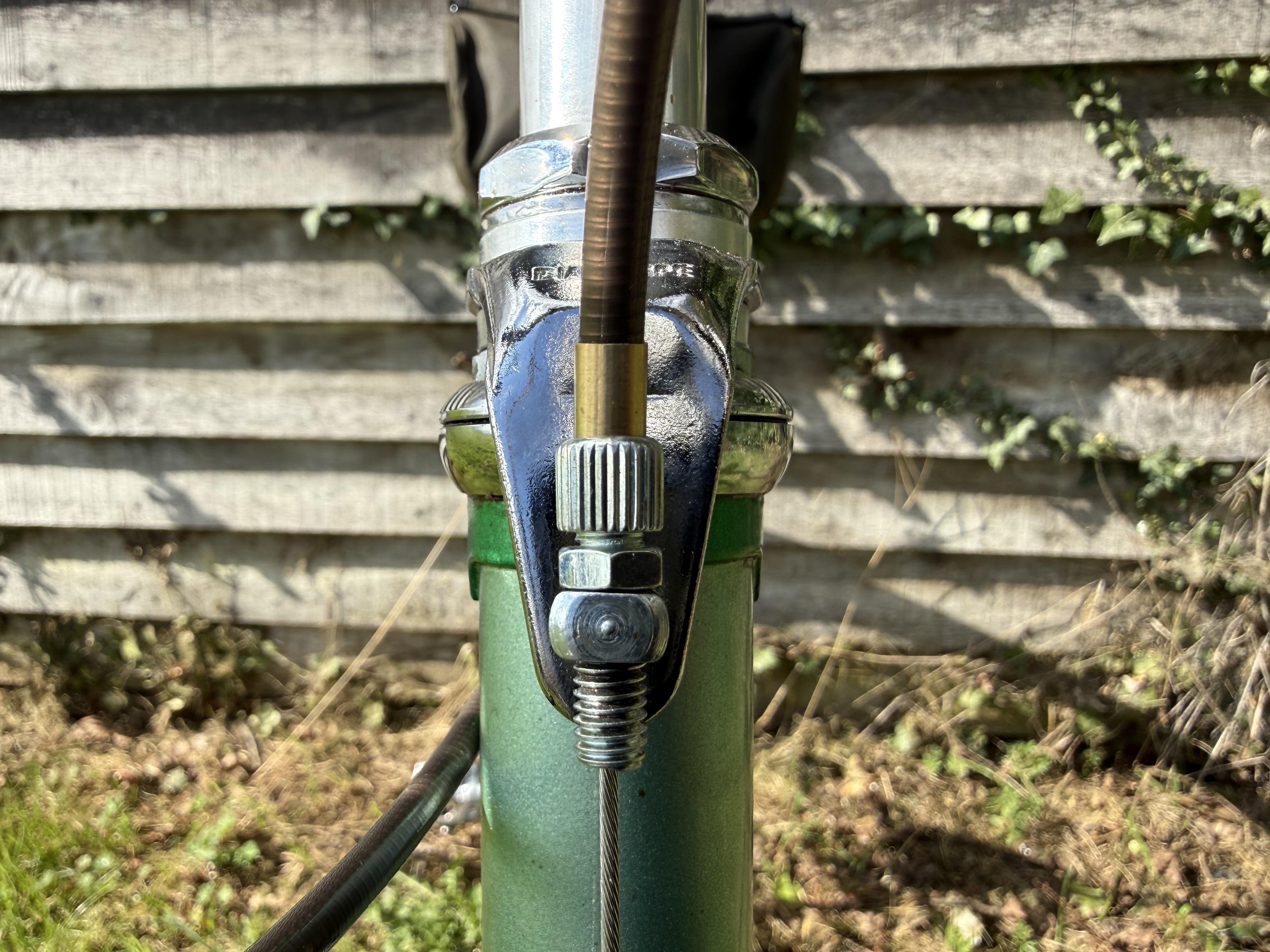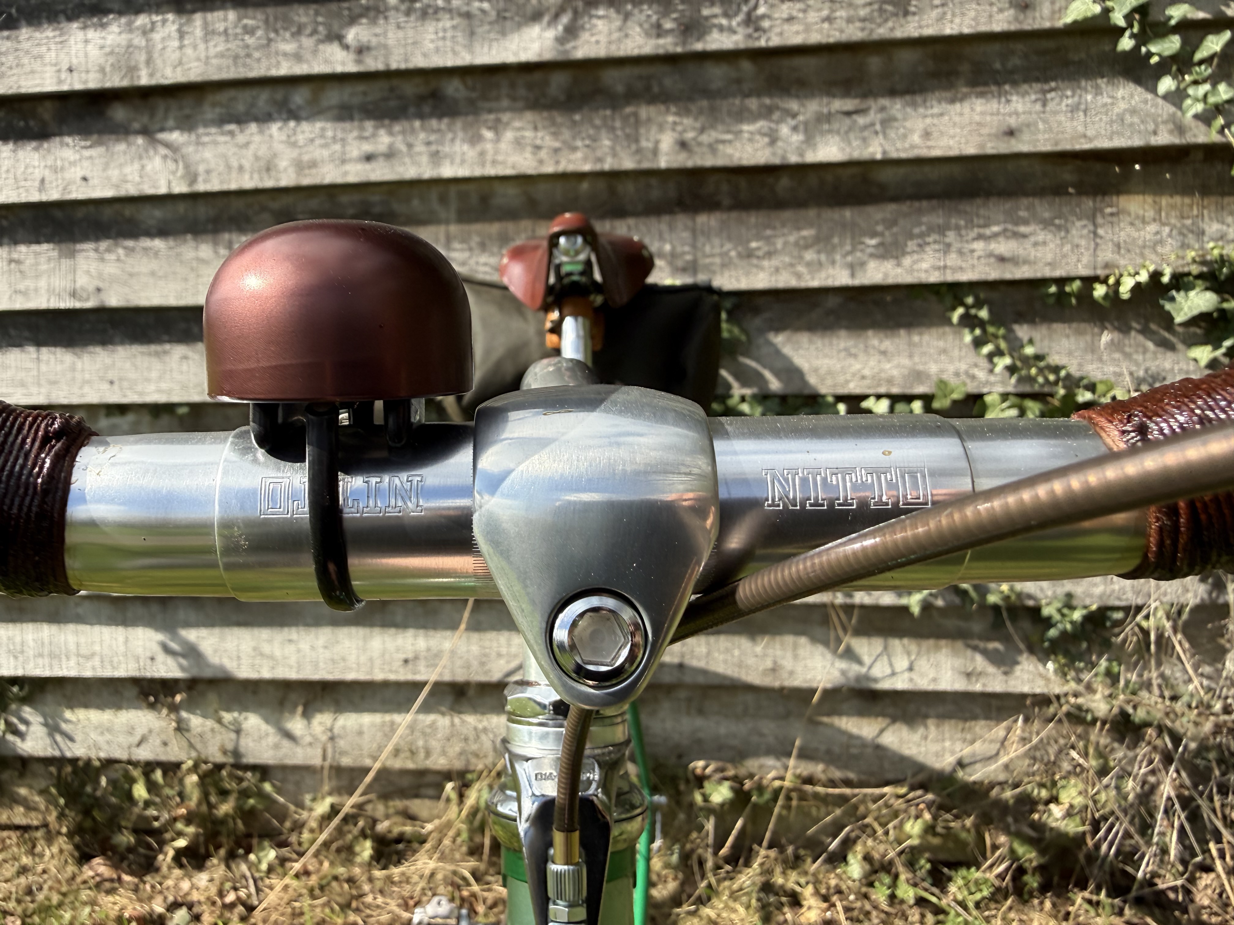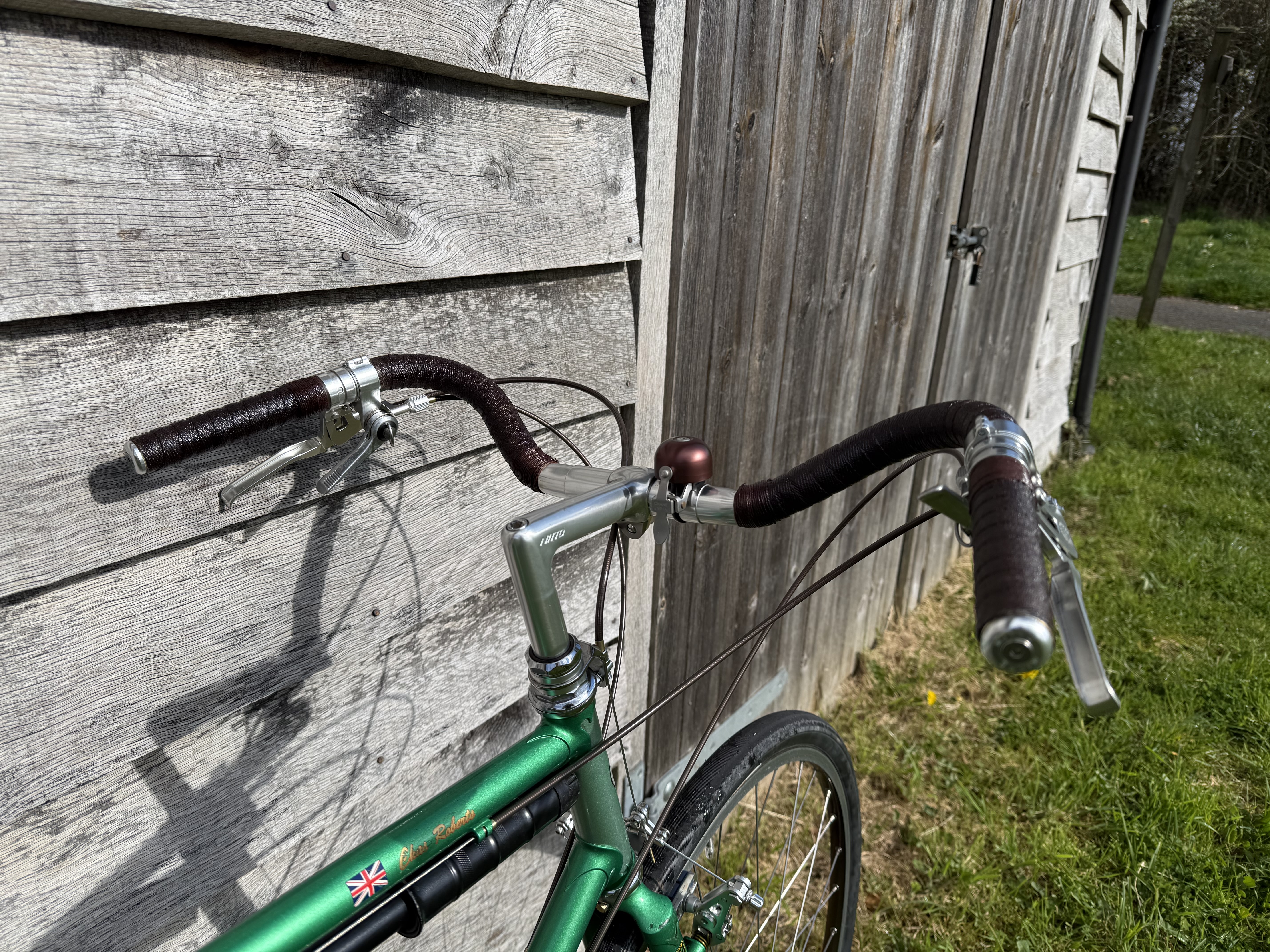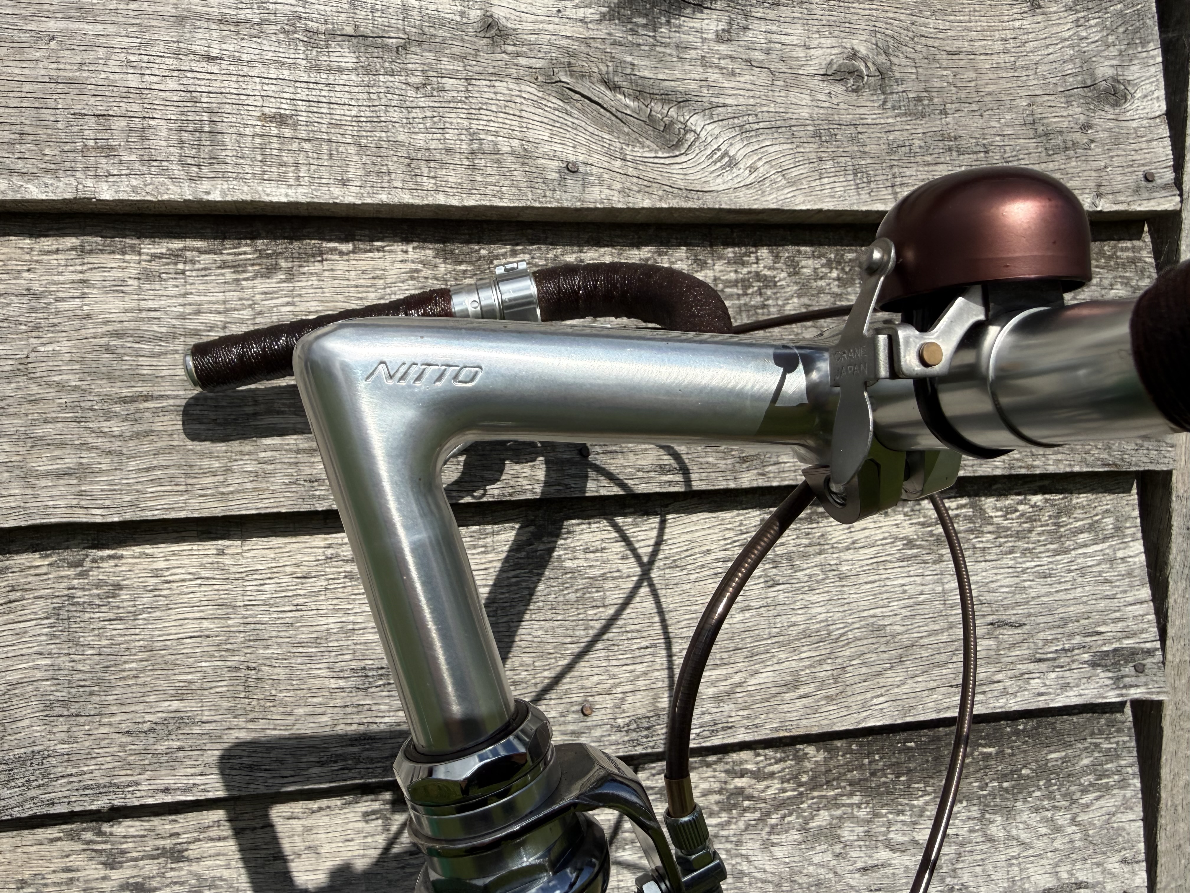 For the shellacked bar tape, saddle, and outer cables, I went with brown. I did the bar tape before buying the saddle and although described as dark brown, the saddle turned out to be chestnut brown. Well I’m not stripping the tape off after numerous coatings of shellac but a maroon rather than brown colour may match up better.