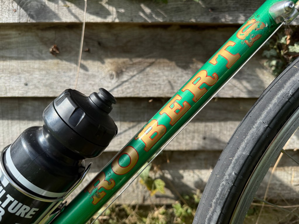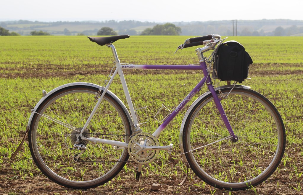The Purple Bike (that is also white) is close but it’s fork isn’t 1” nor curved and the saddle may be a Brooks but is not leather. The colour, a late 80s / early 90s throwback, is a problem too. I bought the frame for an appealingly reduced price, not quite sure how I would build it up. Does the build suit the colour?